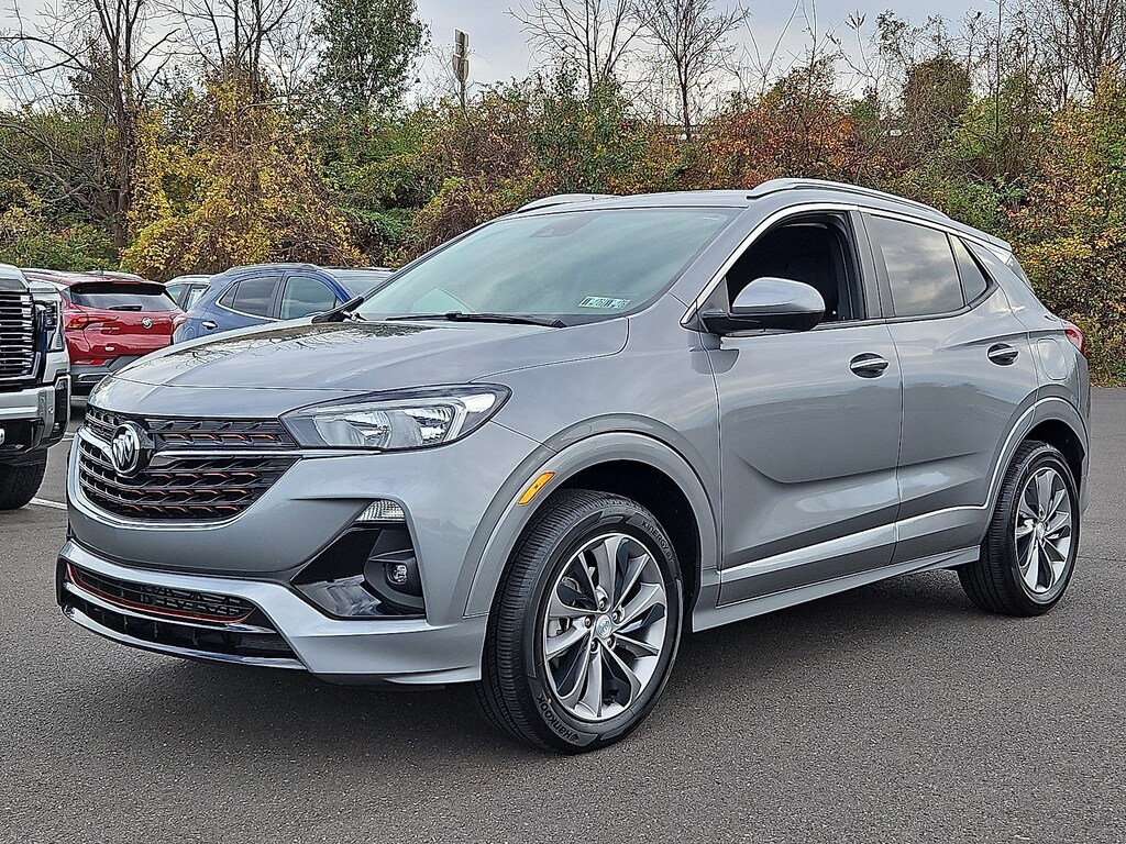 2023 Buick Encore GX Select Moonstone Gray Metallic Buick Certified Pre-Owned Certified, 18 Machined Aluminum Wheels, 2 USB Ports w/Auxiliary Input Jack, 2-Way Power Driver Lumbar Control, 3.17 Final Drive Axle Ratio, 4-Way Manual Passenger Seat Adjuster, 4-Wheel Disc Brakes, 6 Speakers, 8-Way Power Driver Seat Adjuster, ABS brakes, Air Conditioning, All-Weather Floor Mats, Alloy wheels, AM/FM radio: SiriusXM, Auto High-beam Headlights, Automatic temperature control, Body Color Rocker Moldings, Body-Color Bodyside Moldings, Brake assist, Bumpers: body-color, Cloth w/Leatherette Seat Trim, Compass, Custom Grille w/Red Accents, Delay-off headlights, Driver door bin, Driver vanity mirror, Dual front impact airbags, Dual front side impact airbags, Electronic Stability Control, Emergency communication system: OnStar and Buick connected services capable, Enhanced Performance 6-Speaker System, Front anti-roll bar, Front Bucket Seats, Front Center Armrest, Front dual zone A/C, Front fog lights, Front License Plate Bracket, Front reading lights, Front wheel independent suspension, Fully automatic headlights, Hands Free Power Liftgate, Hands-Free Power Liftgate Package, Heated door mirrors, Heated Driver & Front Passenger Seats, Heated front seats, Illuminated entry, Knee airbag, Lane Change Alert w/Side Blind Zone Alert, Low tire pressure warning, Occupant sensing airbag, Outside temperature display, Overhead airbag, Overhead console, Panic alarm, Passenger door bin, Passenger vanity mirror, Power door mirrors, Power driver seat, Power steering, Power windows, Preferred Equipment Group 1SD, Radio data system, Radio: 8 Diagonal Buick Infotainment System, Rear Cross Traffic Alert, Rear reading lights, Rear seat center armrest, Rear side impact airbag, Rear window defroster, Rear window wiper, Red Front & Rear Bumper Protective Molding, Remote keyless entry, Ride & Handling Suspension, Safety Package II, Security system, SiriusXM Radio, Speed control, Speed-sensing steering, Split folding rear seat, Spoiler, Sport Front Bumper w/Red Accents, Sport Pedal Kit (LPO), Sport Rear Bumper w/Red Accents, Sport Touring Badge, Sport Touring Package, Steering wheel mounted audio controls, Tachometer, Telescoping steering wheel, Tilt steering wheel, Traction control, Trip computer, Variably intermittent wipers, Wheels: 18 Alum w/Dark Android High Gloss Inserts, Wireless Apple CarPlay/Wireless Android Auto.