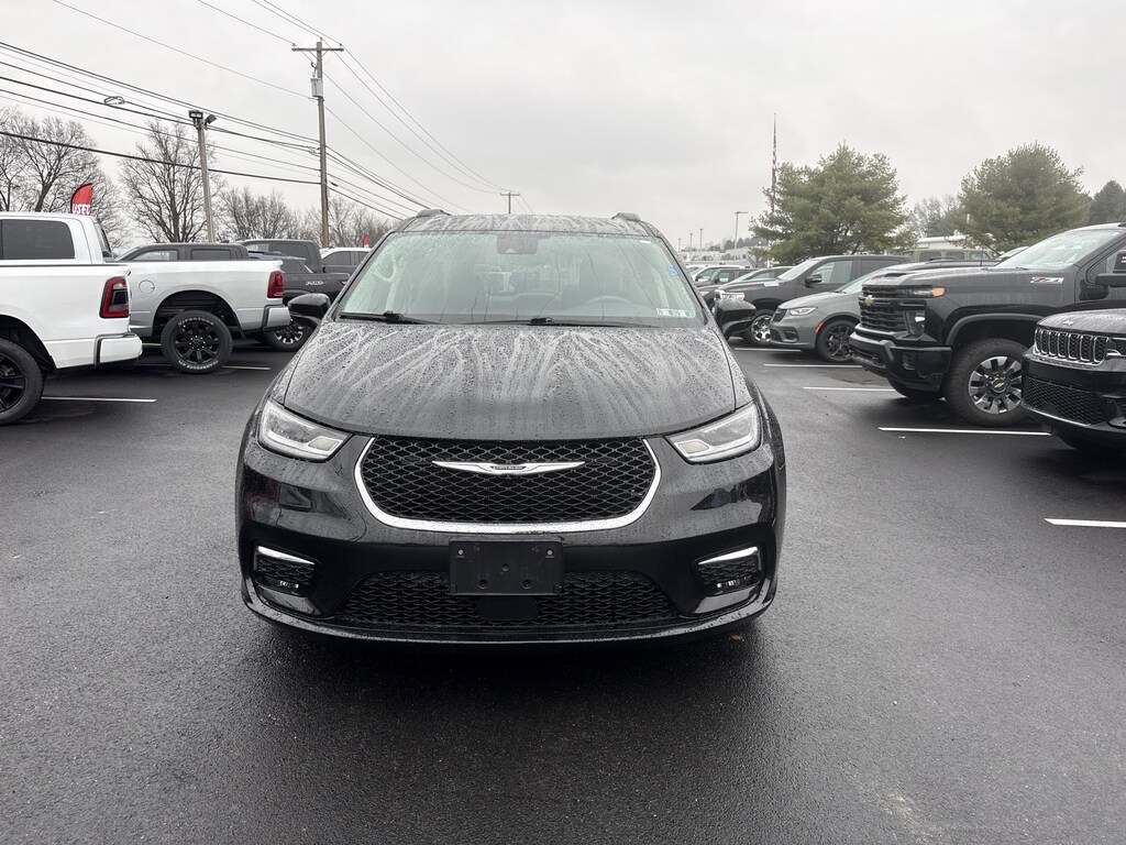 Recent Arrival! Certified. Clean CARFAX. Brilliant Black Crystal Pearlcoat This Pacifica Touring L is nicely equipped with Quick Order Package 27L, Safety Sphere Unavailable (ParkSense Rear Park Assist w/Stop and ParkView Rear Back-Up Camera), FCA US LLC Certified Pre-Owned Certified, 10.1 Touchscreen Display, AM/FM radio: SiriusXM, Heated steering wheel, Rain sensing wipers, SiriusXM Satellite Radio, 17 x 7.0 Aluminum Wheels, 3.25 Axle Ratio, 3rd row seats: split-bench, 4-Wheel Disc Brakes, 6 Speakers, ABS brakes, Air Conditioning, Alloy wheels, Apple CarPlay, Apple CarPlay/Android Auto, Auto-dimming Rear-View mirror, Automatic temperature control, Black Seats, Brake assist, Bumpers: body-color, Compass, Delay-off headlights, Disassociated Touchscreen Display, Driver door bin, Driver vanity mirror, Driver's Seat Mounted Armrest, Dual front impact airbags, Dual front side impact airbags, Electronic Stability Control, For More Info, Call 800-643-2112, Four wheel independent suspension, Front anti-roll bar, Front Bucket Seats, Front dual zone A/C, Front fog lights, Front reading lights, Fully automatic headlights, Garage door transmitter, Google Android Auto, GPS Antenna Input, Heated door mirrors, Heated front seats, Illuminated entry, Integrated Active Noise Cancellation, Integrated Center Stack Radio, Knee airbag, Low tire pressure warning, Memory seat, Occupant sensing airbag, Outside temperature display, Overhead airbag, Overhead console, Panic alarm, Passenger door bin, Passenger seat mounted armrest, Passenger vanity mirror, Perforated Leather Trim Bucket Seats, Power door mirrors, Power driver seat, Power Liftgate, Power steering, Power windows, Radio data system, Radio: Uconnect 5 w/10.1 Display, Rear air conditioning, Rear reading lights, Rear window defroster, Rear window wiper, Reclining 3rd row seat, Remote keyless entry, Roof rack, Security system, SiriusXM Radio Service, Speed control, Split folding rear seat, Spoiler, Steering wheel mounted audio controls, Tachometer, Telescoping steering wheel, Tilt steering wheel, Touring Suspension, Traction control, Trip computer, Turn signal indicator mirrors, USB Host Flip, Variably intermittent wipers, and Voltmeter. 10.1 Touchscreen Display, AM/FM radio: SiriusXM, Heated steering wheel, ParkSense Rear Park Assist w/Stop, ParkView Rear Back-Up Camera, Quick Order Package 27L, Rain sensing wipers, Safety Sphere Unavailable, SiriusXM Satellite Radio.
