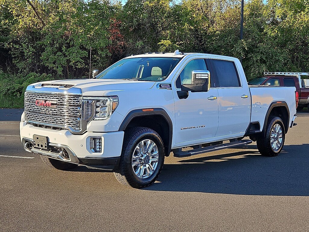 2022 GMC Sierra 2500HD Denali CERTIFIED Summit White GMC Certified Pre-Owned Certified, 10-Speed Automatic, 4WD, Jet Black Leather, 10-Way Power Driver Seat Adjuster w/Lumbar, 10-Way Power Passenger Seat Adjuster w/Lumbar, 12-Volt Rear Auxiliary Power Outlet, 120-Volt Bed Mounted Power Outlet, 120-Volt Instrument Panel Power Outlet, 2 USB Ports, 2 USB Ports (1st Row), 2-Speed Active Transfer Case, 220 Amps Alternator, 2nd Row Dual USB Charge-Only Ports, 3.42 Axle Ratio, 3.73 Rear Axle Ratio, 4-Wheel Disc Brakes, 6 Rectangular Chromed Tubular Assist Steps, 7 Speakers, ABS brakes, Air Conditioning, Alloy wheels, AM/FM radio: SiriusXM with 360L, Apple CarPlay/Android Auto, Auto High-beam Headlights, Auto-dimming door mirrors, Auto-dimming Rear-View mirror, Automatic Emergency Braking, Automatic temperature control, Bed View Camera w/2 Trailer Camera Provisions, Bose Premium 7 Speaker Sound System, Brake assist, Bumpers: body-color, Compass, Compass Located In Instrument Cluster, Deep-Tinted Glass, Delay-off headlights, Driver Alert Package I, Driver Alert Package II, Driver door bin, Driver Memory, Driver vanity mirror, Dual front impact airbags, Dual front side impact airbags, Electric Rear-Window Defogger, Electrical Lock Control Steering Column, Electronic Stability Control, Emergency communication system: OnStar and GMC Connected Services capable, Engine Block Heater, Exhaust Brake, Exterior Parking Camera Rear, Floor-Mounted Center Console, Following Distance Indicator, Forge Perforated Leather-Appointed Front Seat Trim, Forward Collision Alert, Front anti-roll bar, Front Bucket Seats, Front Center Armrest, Front Chrome Recovery Hooks, Front dual zone A/C, Front fog lights, Front reading lights, Front wheel independent suspension, Fully automatic headlights, Garage door transmitter, Genuine wood console insert, Genuine wood door panel insert, GMC Connected Access Capable, Gooseneck/5th Wheel Prep Package, HD Surround Vision w/2 Trailer View Camera Provisions, Heated & Ventilated Front Bucket Seats, Heated door mirrors, Heated Driver & Front Outboard Passenger Seats, Heated front seats, Heated steering wheel, Heavy-Duty 80 Amp Battery, Hill Descent Control, Hitch Guidance w/Hitch View, Illuminated entry, In-Vehicle Trailering System App, Integrated Trailer Brake Controller, IntelliBeam Automatic High Beam On/Off, Keyless Open & Start, Lane Change Alert w/Side Blind Zone Alert, Lane Departure Warning System, LED Cargo Area Lighting, LED Smoked Amber Roof Marker Lamps, Low tire pressure warning, Manual Tilt-Wheel/Telescoping Steering Column, Memory seat, Navigation System, Not Equipped w/Front & Rear Park Assist, Not Equipped w/Heated 2nd Row Outboard Seats, Occupant sensing airbag, Off-Road Suspension, OnStar & GMC Connected Services Capable, Outside temperature display, Overhead airbag, Overhead console, Panic alarm, Passenger door bin, Passenger vanity mirror, Pickup Box, Polished Exhaust Tip, Power Door Locks, Power door mirrors, Power driver seat, Power Front Passenger Windows w/Express Up/Down, Power passenger seat, Power Rear Windows w/Express Down, Power Sliding Rear Window w/Defogger, Power steering, Power windows, Power Windows w/Driver Express Up/Down, Preferred Equipment Group 5SA, Premium audio system: Premium GMC Infotainment System, Radio: AM/FM w/Prem GMC Infotainment System & Navi, Rear Cross Traffic Alert, Rear reading lights, Rear seat center armrest, Rear step bumper, Rear Wheelhouse Liners, Rear window defroster, Remote keyless entry, Remote Vehicle Starter System, Safety Alert Seat, Security system, Signature Denali Grille, SiriusXM w/360L, Snow Plow Prep/Camper Package, Speed control, Speed-sensing steering, Split folding rear seat, Spray-On Pickup Box Bed Liner w/Denali Logo, Steering Wheel Audio Controls, Steering wheel mounted audio controls, Tachometer, Telescoping steering wheel, Tilt steering wheel, Traction control, Trip computer, Turn signal indicator mirrors, Unauthorized Entry Theft-Deterre