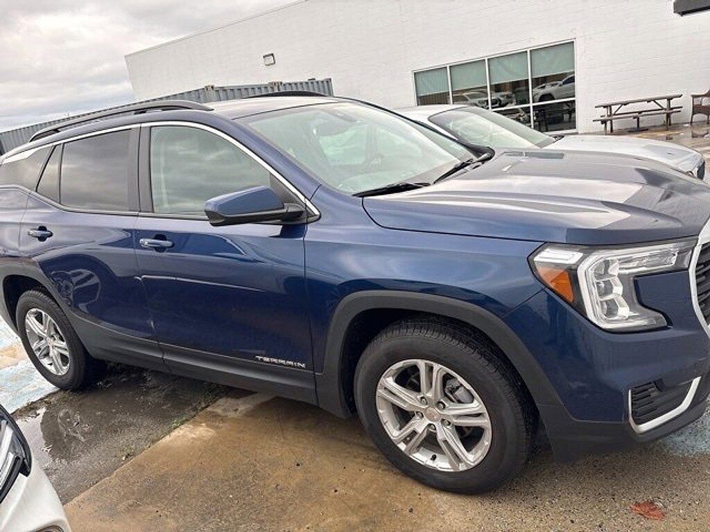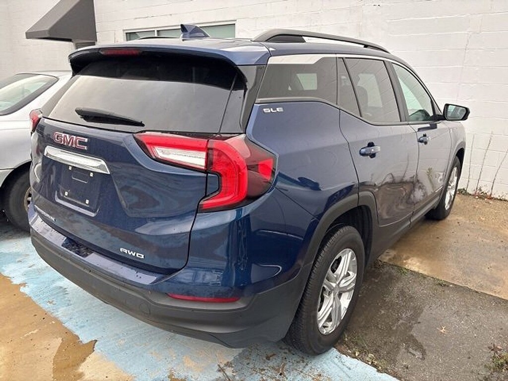 2022 GMC Terrain SLE CERTIFIED Marine Metallic GMC Certified Pre-Owned Certified, AWD, 2 USB Data Ports w/Auxiliary Input Jack, 3 Years of OnStar & Connected Services Plan, 3.47 Axle Ratio, 4-Way Manual Driver's Seat, 4-Way Manual Front Passenger Seat, 4-Wheel Disc Brakes, 4.2 Multi-Color Driver Information Screen, 6 Speakers, 6-Speaker Audio System Feature, 8-Way Power Driver Seat Adjuster, ABS brakes, Air Conditioning, Alloy wheels, AM/FM radio: SiriusXM, Auto High-beam Headlights, Auto-dimming Rear-View mirror, Automatic temperature control, Bluetooth® For Phone, Brake assist, Bumpers: body-color, Compass, Delay-off headlights, Driver & Front Passenger Heated Seats, Driver Convenience Package, Driver door bin, Driver vanity mirror, Dual front impact airbags, Dual front side impact airbags, Dual-Zone Automatic Climate Control, Electronic Stability Control, Emergency communication system: OnStar Guidance, Four wheel independent suspension, Front anti-roll bar, Front Bucket Seats, Front Center Armrest, Front reading lights, Fully automatic headlights, Heated door mirrors, Illuminated entry, Lane Departure Warning System, License Plate Front Mounting Package, Low tire pressure warning, Occupant sensing airbag, Outside temperature display, Overhead airbag, Overhead console, Panic alarm, Passenger door bin, Passenger vanity mirror, Power door mirrors, Power Driver Lumbar Control, Power steering, Power windows, Preferred Equipment Group 3SA, Premium Cloth Seat Trim, Radio data system, Radio: GMC Infotainment Audio System w/7 Display, Rear anti-roll bar, Rear seat center armrest, Rear window defroster, Rear window wiper, Remote keyless entry, Remote Start, Roof-Mounted Luggage Rack Side Rails, Security system, SiriusXM Radio, Speed control, Speed-sensing steering, Split folding rear seat, Spoiler, Steering wheel mounted audio controls, Tachometer, Telescoping steering wheel, Tilt steering wheel, Traction control, Trip computer, Variably intermittent wipers, Wheels: 17 x 7 Silver Painted Aluminum, Wireless Apple CarPlay/Wireless Android Auto, AWD.
