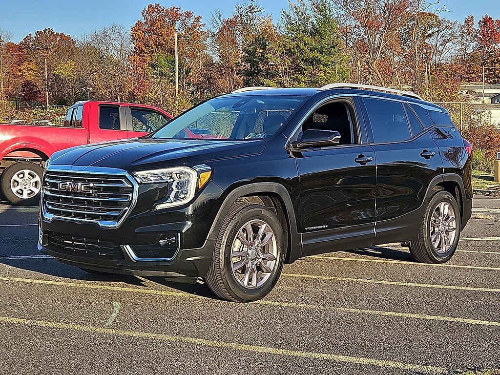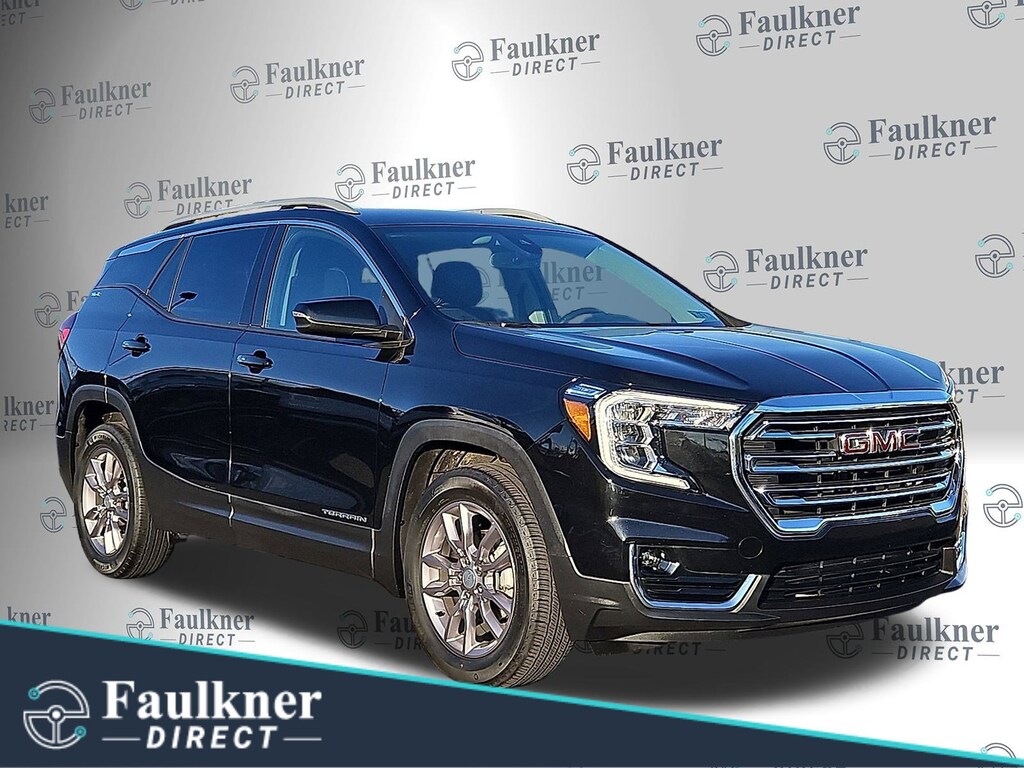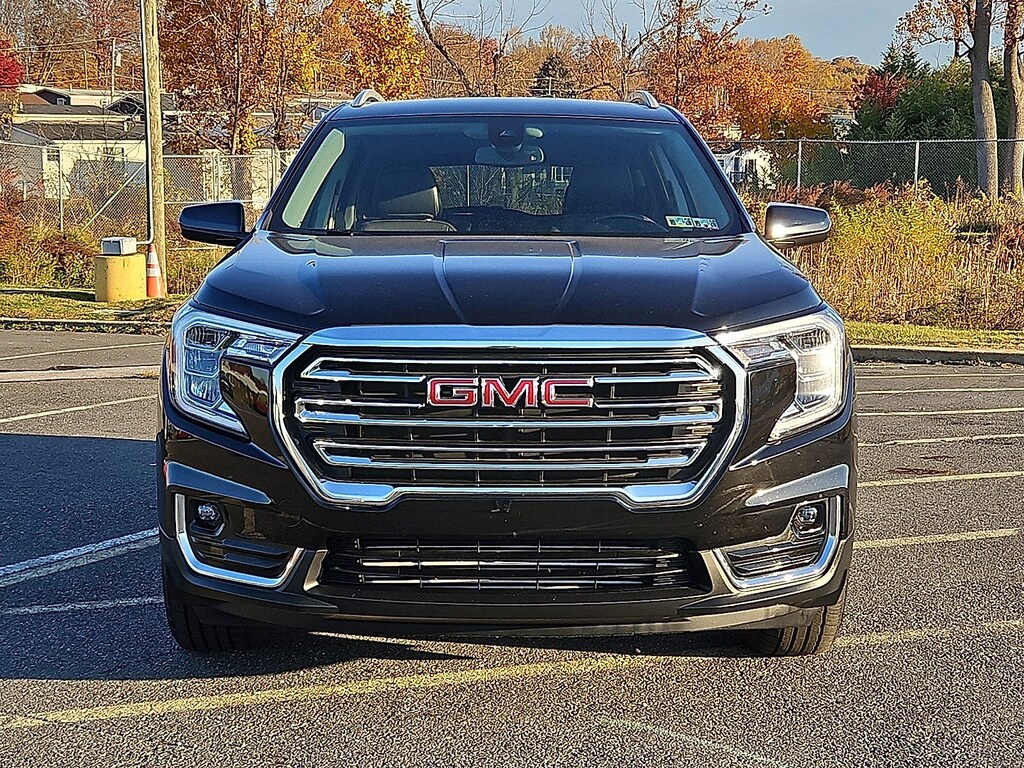 2022 GMC Terrain SLT CERTIFIED Ebony Twilight Metallic GMC Certified Pre-Owned Certified, 2 USB Data Ports, 2 USB Data Ports w/SD Card Reader, 3 Years of OnStar & Connected Services Plan, 3.47 Axle Ratio, 4-Wheel Disc Brakes, 6 Speakers, 6-Speaker Audio System Feature, 6-Way Power Front Passenger Seat, 8-Way Power Driver Seat Adjuster, ABS brakes, Adaptive Cruise Control, Air Conditioning, Alloy wheels, AM/FM radio: SiriusXM, Auto High-beam Headlights, Auto-dimming Rear-View mirror, Automatic temperature control, Bluetooth® For Phone, Brake assist, Bumpers: body-color, Compass, Delay-off headlights, Driver & Front Passenger Heated Seats, Driver door bin, Driver vanity mirror, Dual front impact airbags, Dual front side impact airbags, Electronic Stability Control, Emergency communication system: OnStar Guidance, Four wheel independent suspension, Front anti-roll bar, Front Bucket Seats, Front Center Armrest, Front dual zone A/C, Front fog lights, Front Passenger 2-Way Power Lumbar, Front reading lights, Fully automatic headlights, Garage door transmitter, GMC Pro Safety Plus, Heated door mirrors, Heated front seats, Heated steering wheel, Illuminated entry, Infotainment Package II, Lane Change Alert w/Side Blind Zone Alert, Low tire pressure warning, Memory seat, Not Equipped w/Lane Change & Rear Cross Traffic Alerts, Occupant sensing airbag, Outside temperature display, Overhead airbag, Overhead console, Panic alarm, Passenger door bin, Passenger vanity mirror, Perforated Leather-Appointed Seat Trim, Power door mirrors, Power Driver Lumbar Control, Power driver seat, Power Liftgate, Power passenger seat, Power steering, Power windows, Preferred Equipment Group 4SA, Premium 7-Speaker Bose Sound System w/Amplifier, Radio data system, Radio: GMC Infotainment Audio System w/8 Display, Radio: GMC Infotainment Audio System w/Navigation, Rear anti-roll bar, Rear Cross-Traffic Alert, Rear Park Assist, Rear seat center armrest, Rear window defroster, Rear window wiper, Remote keyless entry, Roof rack: rails only, Safety Alert Seat, Security system, SiriusXM Radio, Speed control, Speed-sensing steering, Split folding rear seat, Spoiler, Steering wheel mounted audio controls, Tachometer, Telescoping steering wheel, Tilt steering wheel, Traction control, Trip computer, Turn signal indicator mirrors, Variably intermittent wipers, Wheels: 18 x 7 Silver Painted Aluminum, Wireless Apple CarPlay/Wireless Android Auto.