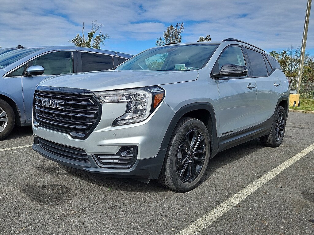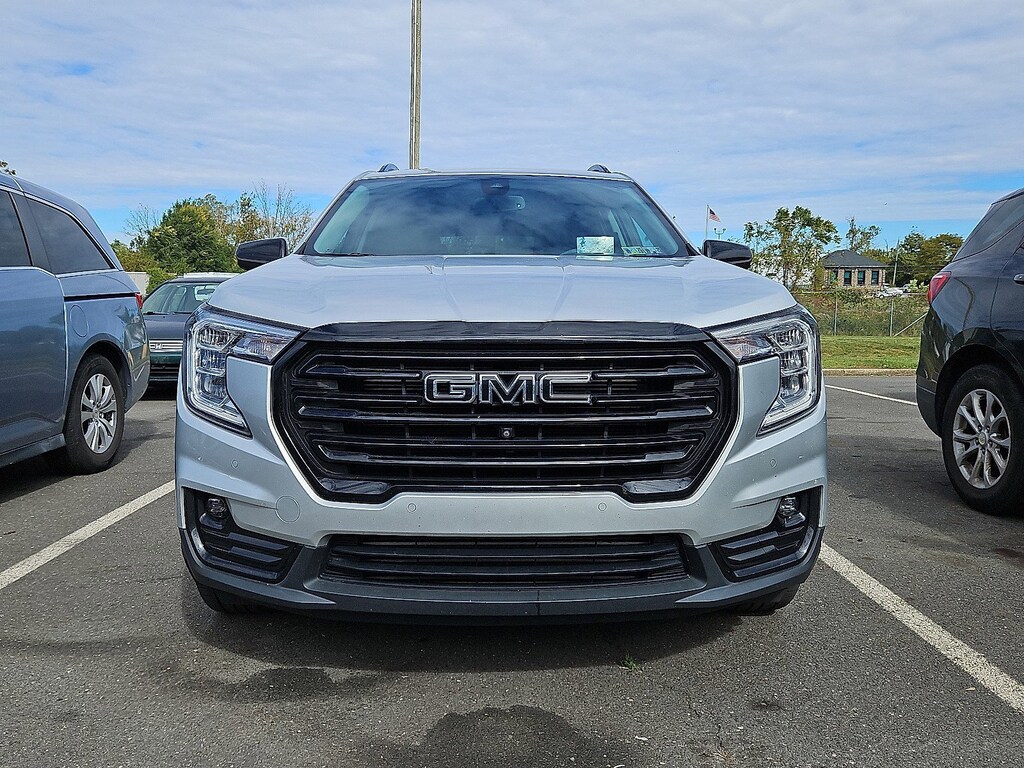 2022 GMC Terrain SLT Quicksilver Metallic GMC Certified Pre-Owned Certified, AWD, 2 USB Data Ports, 2 USB Data Ports w/SD Card Reader, 3 Years of OnStar & Connected Services Plan, 3.47 Axle Ratio, 4-Wheel Disc Brakes, 6 Speakers, 6-Speaker Audio System Feature, 6-Way Power Front Passenger Seat, 8-Way Power Driver Seat Adjuster, ABS brakes, Adaptive Cruise Control, Air Conditioning, Alloy wheels, AM/FM radio: SiriusXM, Auto High-beam Headlights, Auto-dimming Rear-View mirror, Automatic temperature control, Black GMC Center Caps w/Red GMC Lettering, Black Mirror Caps, Bluetooth® For Phone, Brake assist, Bumpers: body-color, Compass, Darkened Front Grille, Delay-off headlights, Driver & Front Passenger Heated Seats, Driver door bin, Driver vanity mirror, Dual front impact airbags, Dual front side impact airbags, Electronic Stability Control, Elevation Edition, Emergency communication system: OnStar Guidance, Four wheel independent suspension, Front & Rear Black GMC Emblems (LPO), Front & Rear Park Assist, Front anti-roll bar, Front Bucket Seats, Front Center Armrest, Front dual zone A/C, Front fog lights, Front Passenger 2-Way Power Lumbar, Front reading lights, Fully automatic headlights, Garage door transmitter, GMC Pro Safety Plus, HD Surround Vision, Head-Up Display, Heated door mirrors, Heated front seats, Heated steering wheel, Illuminated entry, Lane Change Alert w/Side Blind Zone Alert, Lane Departure Warning System, Low tire pressure warning, Memory seat, Not Equipped w/Lane Change & Rear Cross Traffic Alerts, Occupant sensing airbag, Outside temperature display, Overhead airbag, Overhead console, Panic alarm, Passenger door bin, Passenger vanity mirror, Perforated Leather-Appointed Seat Trim, Power door mirrors, Power Driver Lumbar Control, Power driver seat, Power Liftgate, Power passenger seat, Power steering, Power windows, Preferred Equipment Group 4SA, Radio data system, Radio: GMC Infotainment Audio System w/8 Display, Rear anti-roll bar, Rear Cross-Traffic Alert, Rear Park Assist, Rear seat center armrest, Rear window defroster, Rear window wiper, Remote keyless entry, Roof rack: rails only, Roof-Mounted Luggage Rack Side Rails, Safety Alert Seat, Security system, SiriusXM Radio, Skyscape Power Sunroof w/Power Sunscreen, Speed control, Speed-sensing steering, Split folding rear seat, Spoiler, Steering wheel mounted audio controls, Tachometer, Tech Package, Telescoping steering wheel, Tilt steering wheel, Traction control, Trip computer, Turn signal indicator mirrors, Variably intermittent wipers, Wheels: 18 x 7 Silver Painted Aluminum, Wheels: 19 x 7.5 Gloss Black Painted Aluminum, Wireless Apple CarPlay/Wireless Android Auto, AWD.