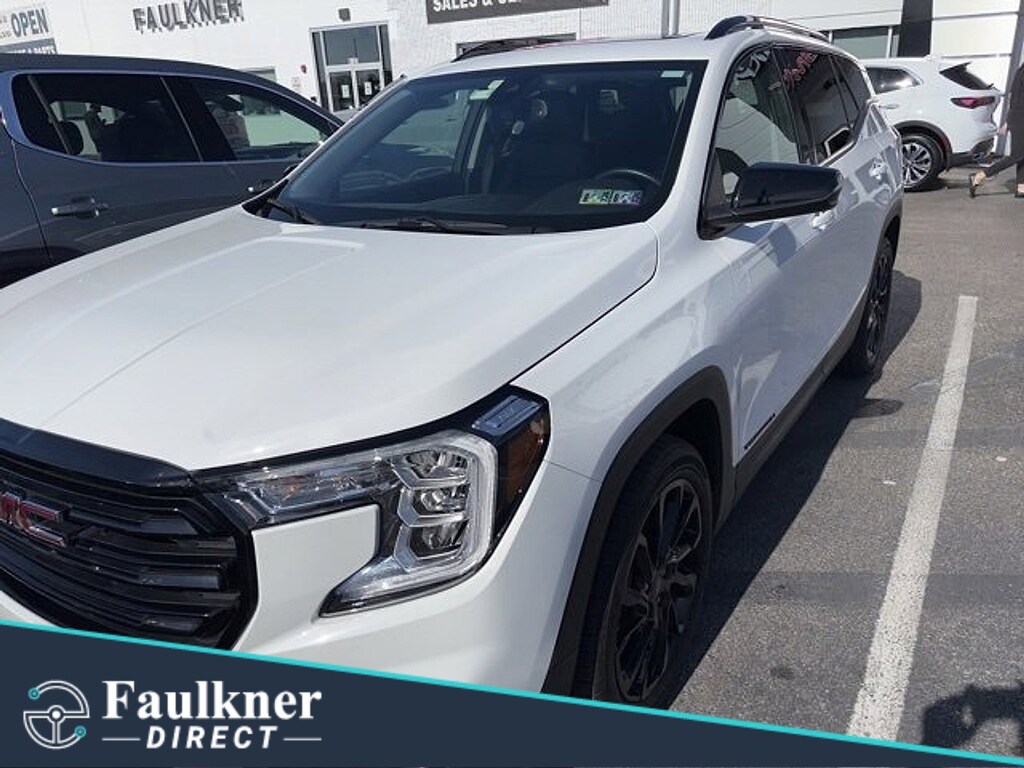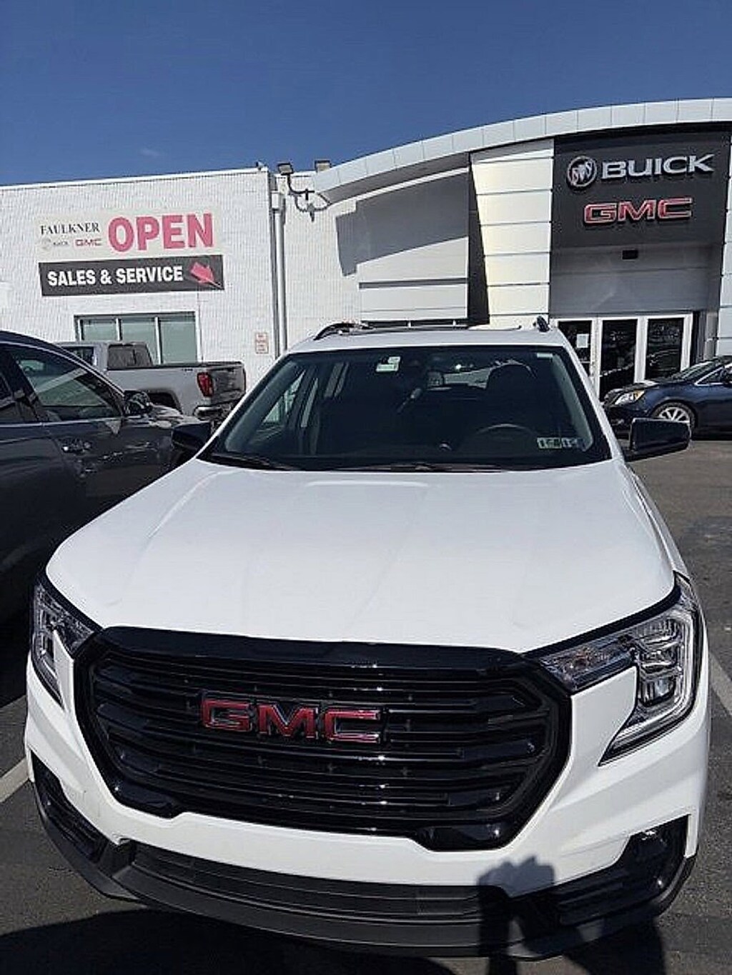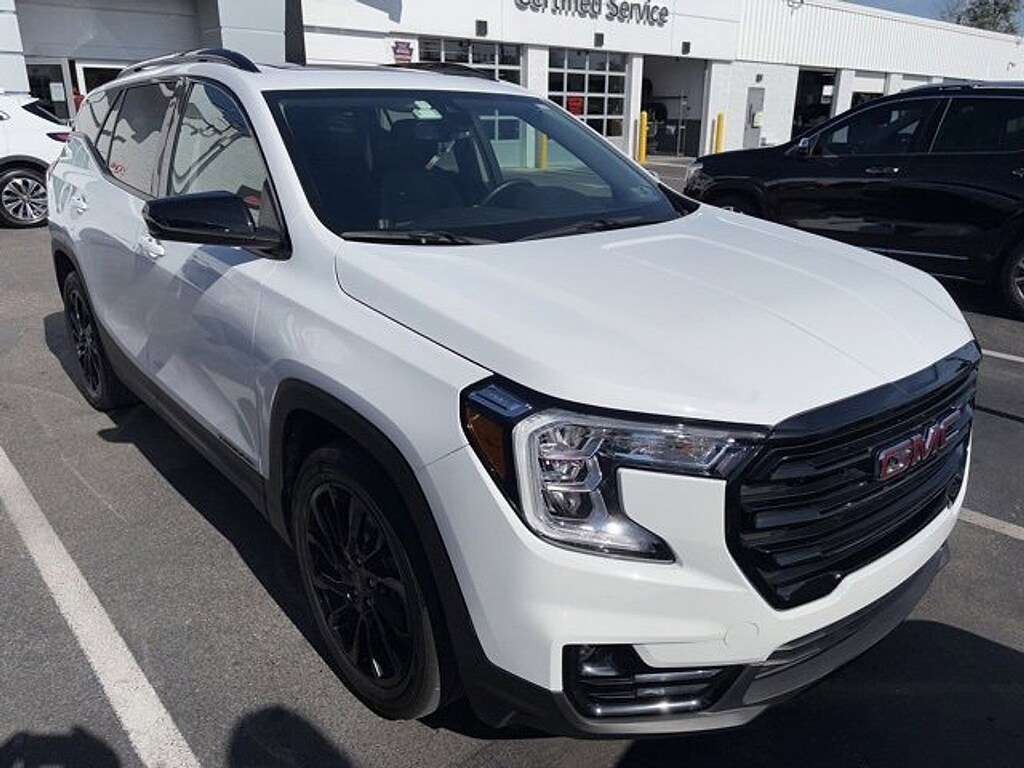 2023 GMC Terrain SLT Summit White GMC Certified Pre-Owned Certified, 2 USB Data Ports, 2 USB Data Ports w/SD Card Reader, 3.47 Axle Ratio, 4-Wheel Disc Brakes, 6 Speakers, 6-Speaker Audio System Feature, 6-Way Power Front Passenger Seat, 8-Way Power Driver Seat Adjuster, ABS brakes, Adaptive Cruise Control, Air Conditioning, Alloy wheels, AM/FM radio: SiriusXM, Auto High-beam Headlights, Auto-dimming Rear-View mirror, Automatic temperature control, Black GMC Center Caps w/Red GMC Lettering, Black Mirror Caps, Bluetooth® For Phone, Brake assist, Bumpers: body-color, Compass, Darkened Front Grille, Delay-off headlights, Driver & Front Passenger Heated Seats, Driver door bin, Driver vanity mirror, Dual front impact airbags, Dual front side impact airbags, Electronic Stability Control, Elevation Edition, Emergency communication system: OnStar and GMC connected services capable, Four wheel independent suspension, Front anti-roll bar, Front Bucket Seats, Front Center Armrest, Front dual zone A/C, Front fog lights, Front Passenger 2-Way Power Lumbar, Front reading lights, Fully automatic headlights, Garage door transmitter, Heated door mirrors, Heated front seats, Heated steering wheel, Illuminated entry, Lane Change Alert w/Side Blind Zone Alert, Low tire pressure warning, Memory seat, Occupant sensing airbag, Outside temperature display, Overhead airbag, Overhead console, Panic alarm, Passenger door bin, Passenger vanity mirror, Perforated Leather-Appointed Seat Trim, Power door mirrors, Power Driver Lumbar Control, Power driver seat, Power Liftgate, Power passenger seat, Power steering, Power windows, Preferred Equipment Group 4SA, Radio data system, Radio: GMC Infotainment Audio System w/8 Display, Rear anti-roll bar, Rear Cross-Traffic Alert, Rear Park Assist, Rear seat center armrest, Rear window defroster, Rear window wiper, Remote keyless entry, Roof rack: rails only, Roof-Mounted Luggage Rack Side Rails, Safety Alert Seat, Security system, Side Blind Zone & Rear Cross Traffic, SiriusXM Radio, Skyscape Power Sunroof w/Power Sunscreen, Speed control, Speed-sensing steering, Split folding rear seat, Spoiler, Steering wheel mounted audio controls, Tachometer, Telescoping steering wheel, Terrain Pro Safety Plus, Tilt steering wheel, Traction control, Trip computer, Turn signal indicator mirrors, Variably intermittent wipers, Wheels: 18 x 7 Silver Painted Aluminum, Wheels: 19 Gloss Black Aluminum, Wireless Apple CarPlay/Wireless Android Auto.