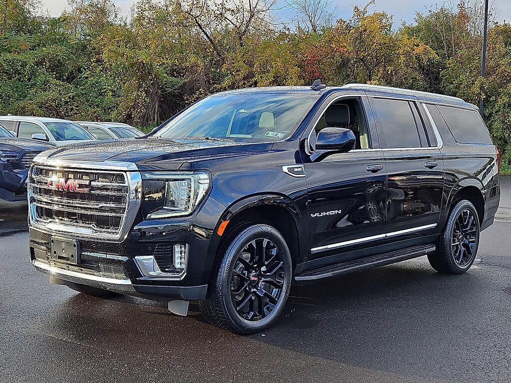 2023 GMC Yukon XL SLT Onyx Black GMC Certified Pre-Owned Certified, 4WD, 2 Presets For Power Driver Seat, 3 Years of OnStar & Connected Services Plan (DISC), 3.23 Rear Axle Ratio, 3rd row seats: split-bench, 4-Wheel Disc Brakes, 9 Speakers, ABS brakes, Air Conditioning, Alloy wheels, AM/FM radio: SiriusXM with 360L, AM/FM Stereo, Apple CarPlay/Android Auto, Auto High-beam Headlights, Auto-dimming Rear-View mirror, Automatic Emergency Braking, Automatic temperature control, Bodyside moldings, Bose 9-Speaker Stereo Audio System Feature, Brake assist, Bright Chrome Bodyside Moldings, Bright Front & Rear Door Sill Plates, Bumpers: body-color, Chrome Door Handles w/Body-Color Strip, Compass, Delay-off headlights, Driver door bin, Driver vanity mirror, Dual front impact airbags, Dual front side impact airbags, Dual-Pane Panoramic Power Sunroof, Electronic Stability Control, Emergency communication system: OnStar and GMC connected services capable, Following Distance Indicator, Forward Collision Alert, Four wheel independent suspension, Front & Rear Park Assist, Front anti-roll bar, Front Bucket Seats, Front Center Armrest, Front dual zone A/C, Front fog lights, Front Pedestrian Braking, Front reading lights, Fully automatic headlights, Garage door transmitter, Hands-Free Power Programmable Rear Liftgate, Heated & Ventilated Driver & Front Passenger Seats, Heated door mirrors, Heated Driver & Front Passenger Seats, Heated front seats, Illuminated entry, Inside Rear-View Auto-Dimming Mirror, IntelliBeam Automatic High Beam On/Off, Lane Change Alert w/Side Blind Zone Alert, Lane Keep Assist w/Lane Departure Warning, License Plate Front Mounting Package, Low tire pressure warning, Memory seat, Navigation System, Not Equip w/Ventilated Seat Cushion Blower Motor, Not Equipped w/4-Way Driver & Fr Pass Pwr Lumbar, Occupant sensing airbag, Outside temperature display, Overhead airbag, Overhead console, Panic alarm, Passenger door bin, Passenger vanity mirror, Perforated Leather-Appointed Seating, Power door mirrors, Power driver seat, Power Liftgate, Power passenger seat, Power steering, Power windows, Preferred Equipment Group 4SA, Premium Smooth Ride Suspension, Rain sensing wipers, Rear air conditioning, Rear anti-roll bar, Rear Cross Traffic Alert, Rear reading lights, Rear seat center armrest, Rear window defroster, Rear window wiper, Remote keyless entry, Roof rack: rails only, Safety Alert Seat, Security system, SiriusXM w/360L, Speed control, Speed-sensing steering, Split folding rear seat, Spoiler, Steering wheel mounted audio controls, Tachometer, Telescoping steering wheel, Tilt steering wheel, Traction control, Trip computer, Universal Home Remote, Variably intermittent wipers, Ventilated front seats, Voltmeter, Wheels: 20 x 9 6-Spoke Polished Aluminum, Wheels: 22 Multi-Spoke Gloss Black (LPO) (SRV), Wheels: 22 x 9 Steel Interim (LPO), Wireless Charging, 4WD.