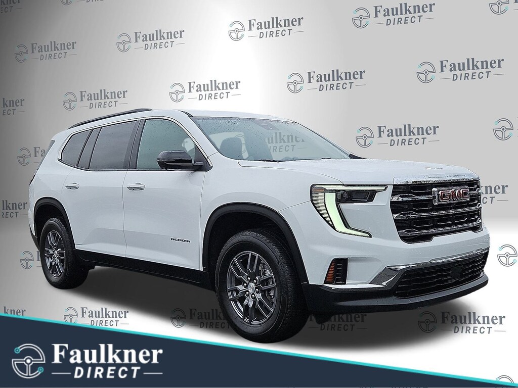 2025 GMC Acadia Elevation GM CERTIFIED Summit White GMC Certified Pre-Owned Certified, FWD, After Dark Cloth, 12 Speakers, 18 x 7.5 Aluminum Wheels, 2-Way Driver Power Lumbar Seat Adjuster, 3.49 Final Drive Axle Ratio, 3rd row seats: split-bench, 4-Way Manual Front Passenger Seat Adjuster, 4-Wheel Disc Brakes, 8-Passenger Seating (2-3-3 Seating Configuration), 8-Way Power Driver Seat Adjuster, ABS brakes, Air Conditioning, Alloy wheels, AM/FM radio: SiriusXM with 360L, Apple CarPlay/Android Auto, Auto High-beam Headlights, Auto-dimming Rear-View mirror, Automatic temperature control, Bodyside moldings, Brake assist, Bumpers: body-color, Cloth Seat Trim, Compass, Delay-off headlights, Driver door bin, Driver vanity mirror, Dual front impact airbags, Dual front side impact airbags, Electronic Stability Control, Emergency communication system: OnStar Services capable, Exterior Parking Camera Rear, Four wheel independent suspension, Front anti-roll bar, Front Bucket Seats, Front Center Armrest, Front dual zone A/C, Front fog lights, Front reading lights, Fully automatic headlights, Heated door mirrors, Heated front seats, Heated steering wheel, Illuminated entry, Leather steering wheel, Low tire pressure warning, Navigation System, Occupant sensing airbag, Outside temperature display, Overhead airbag, Overhead console, Panic alarm, Passenger door bin, Passenger vanity mirror, Power door mirrors, Power driver seat, Power Liftgate, Power steering, Power windows, Preferred Equipment Group 4SC, Radio data system, Rear air conditioning, Rear anti-roll bar, Rear reading lights, Rear seat center armrest, Rear side impact airbag, Rear window defroster, Rear window wiper, Remote keyless entry, Security system, Speed control, Speed-sensing steering, Split folding rear seat, Spoiler, Sport steering wheel, Steering wheel mounted audio controls, Tachometer, Telescoping steering wheel, Tilt steering wheel, Traction control, Trip computer, Turn signal indicator mirrors, Variably intermittent wipers, Voltmeter, FWD, After Dark Cloth.