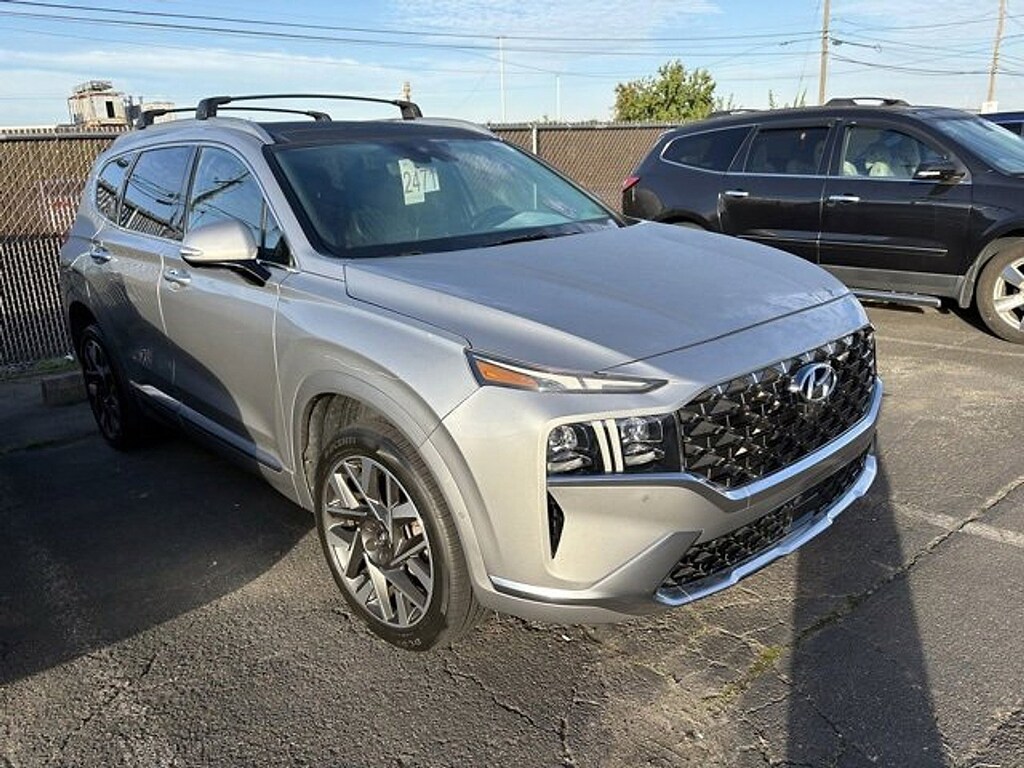 CARFAX One-Owner. Certified. Shimmering Silver Pearl 2022 Hyundai Santa Fe Calligraphy I4 Apple CarPlay & Android Auto, Auto High-beam Headlights, Delay-off headlights, Fully automatic headlights, Navigation System, Option Group 01, Power Liftgate, Power moonroof.