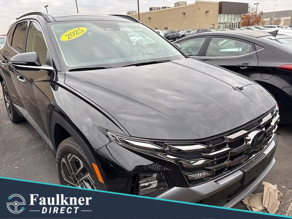 Clean CARFAX. CARFAX One-Owner. Certified. Phantom Black 2025 Hyundai Tucson Limited 2.5L I4 DGI DOHC 16V LEV3-SULEV30 187hp Apple CarPlay & Android Auto, Auto High-beam Headlights, Delay-off headlights, First Aid Kit, Fully automatic headlights, Navigation System, Option Group 01, Panic alarm, Power Liftgate, Power moonroof, Security system.