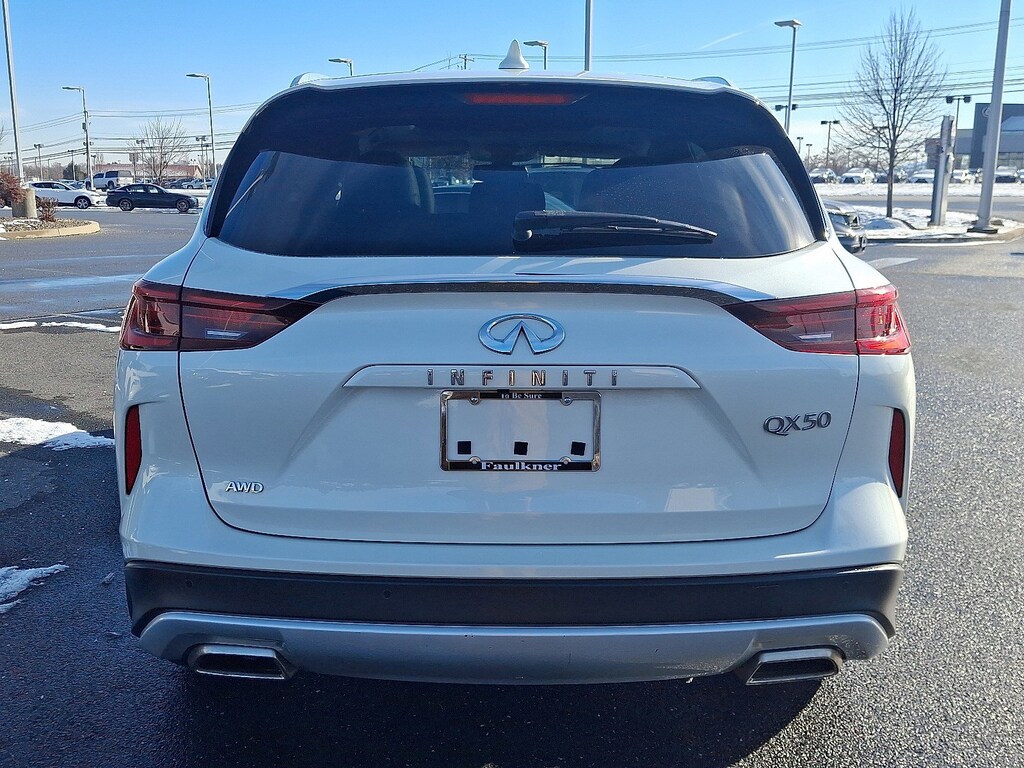 *Backup Camera*, *Bluetooth Hands-Free Calling*, *Built-in USB ports*, *Remote Engine Start*, *All Wheel Drive*, *Leather Seats*, *Heated Seats*, *Sunroof/Moonroof*, *Push Button Start*, *Navigation / GPS*, *INFINITI InTouch Navigation *, *Alloy Wheels*, *Apple Car Play*, *Android Auto*, *Forward Emergency Braking*, *Adaptive Cruise Control*, *Multizone Climate Systems*, *Intelligent Forward Collision Warning*, *Lane Keep Assist with Lane Departure Warning*, *Touch-Screen Display*, QX50 LUXE, AWD, 4-Wheel Disc Brakes, ABS brakes, AM/FM radio: SiriusXM, Anti-whiplash front head restraints, Auto High-beam Headlights, Auto-dimming Rear-View mirror, Automatic temperature control, Cargo Package, Dual front impact airbags, Dual front side impact airbags, Emergency communication system: INFINITI InTouch, Exterior Parking Camera Rear, Front dual zone A/C, Front fog lights, Garage door transmitter: HomeLink, Heated door mirrors, Heated Front Bucket Seats, Leather-Appointed Seat Trim, Power driver seat, Power Liftgate, Power moonroof, Power passenger seat, Rear Parking Sensors, Remote keyless entry, Wheels: 19 Silver Painted Aluminum Alloy.