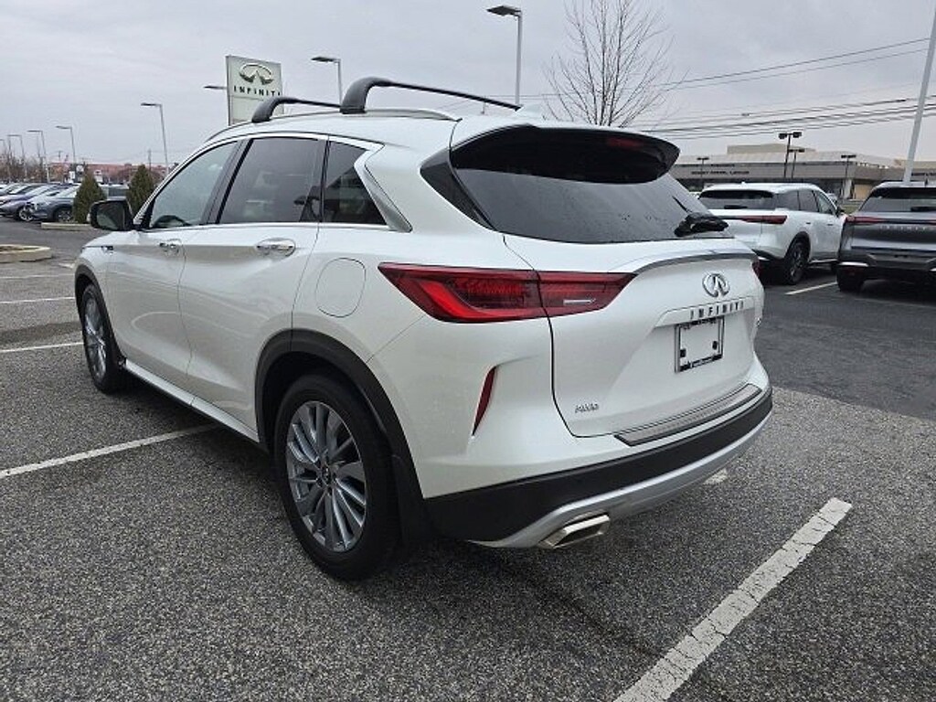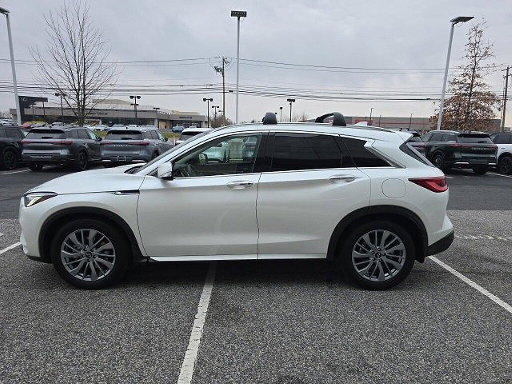 *Backup Camera*, *Bluetooth Hands-Free Calling*, *Built-in USB ports*, *Remote Engine Start*, *All Wheel Drive*, *Leather Seats*, *Heated Seats*, *Bose Premium Audio Package*, *Sunroof/Moonroof*, *Push Button Start*, *Navigation / GPS*, *INFINITI InTouch Navigation *, *Alloy Wheels*, *Apple Car Play*, *Android Auto*, *Forward Emergency Braking*, *Available Built-In 4G LTE Wi-Fi*, *Adaptive Cruise Control*, *Multizone Climate Systems*, *Steering Wheel-Mounted Controls*, *Intelligent Forward Collision Warning*, *Lane Keep Assist with Lane Departure Warning*, *Touch-Screen Display*, QX50 LUXE, AWD, 4-Wheel Disc Brakes, ABS brakes, Auto-dimming Rear-View mirror, Automatic temperature control, Bose 12-Speaker Premium Audio, Dual front impact airbags, Dual front side impact airbags, Emergency communication system: INFINITI InTouch (1-year complimentary trial), Exclusive Paint - Radiant White, Exterior Parking Camera Rear, Front dual zone A/C, Garage door transmitter: HomeLink, Heated door mirrors, Heated Front Bucket Seats, Leather-Appointed Seat Trim, Memory seat, Power door mirrors, Power driver seat, Power Liftgate, Power moonroof, Power passenger seat, Rear Parking Sensors, Remote keyless entry, Wheels: 19 Silver Painted Aluminum Alloy.