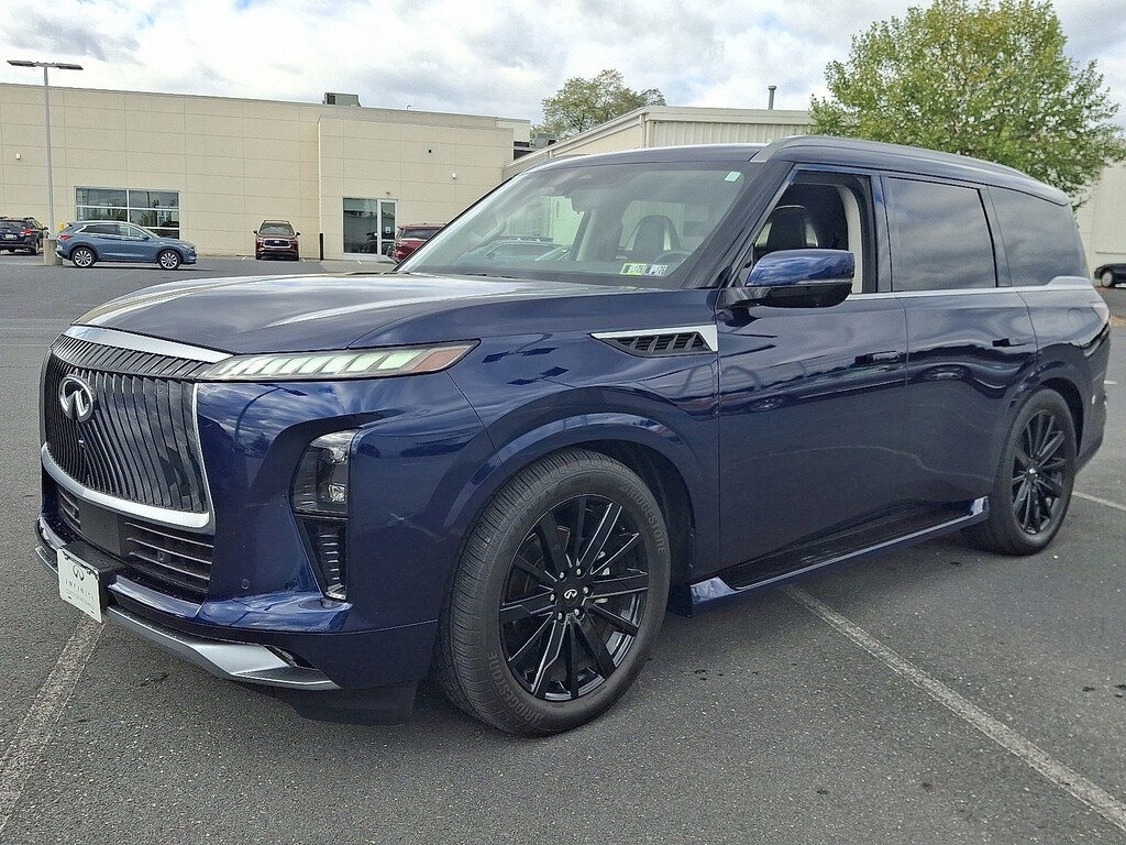 *Backup Camera*, *Bluetooth Hands-Free Calling*, *Built-in USB ports*, *Remote Engine Start*, *All Wheel Drive*, *Leather Seats*, *Heated Seats*, *Heated Steering Wheel*, *Around View Monitor Advanced Technology*, *Sunroof/Moonroof*, *Push Button Start*, *Apple Car Play*, *Android Auto*, *Forward Emergency Braking*, *Adaptive Cruise Control*, *Multizone Climate Systems*, *Intelligent Forward Collision Warning*, *Lane Keep Assist with Lane Departure Warning*, *Memory Seat Package*, *Touch-Screen Display*, QX80 Sensory, 3.5L V6 DOHC 24V, Grand Blue, 4-Wheel Disc Brakes, ABS brakes, Adaptive suspension, Alloy wheels, AM/FM radio: SiriusXM with 360L, Anti-whiplash front head restraints, Apple CarPlay/Android Auto, Auto tilt-away steering wheel, Auto-dimming Rear-View mirror, Auto-leveling suspension, Automatic temperature control, Climate Controlled Front Bucket Seats w/Massage, Compass, Dual front impact airbags, Dual front side impact airbags, Emergency communication system: INFINITI InTouch, Front Bucket Seats, Front dual zone A/C, Fully automatic headlights, Garage door transmitter: myQ Connected Garage, Heads-Up Display, Heated door mirrors, Heated front seats, Heated rear seats, Heated steering wheel, Memory seat, Navigation system: Google Built-in, Outside temperature display, Power Liftgate, Power moonroof, Power passenger seat, Radio: Klipsch Reference Premiere Audio System, Rain sensing wipers, Rear air conditioning, Remote keyless entry, Semi-Aniline Premium Leather Seating Surfaces, Speed control, Ventilated front seats, Ventilated rear seats.