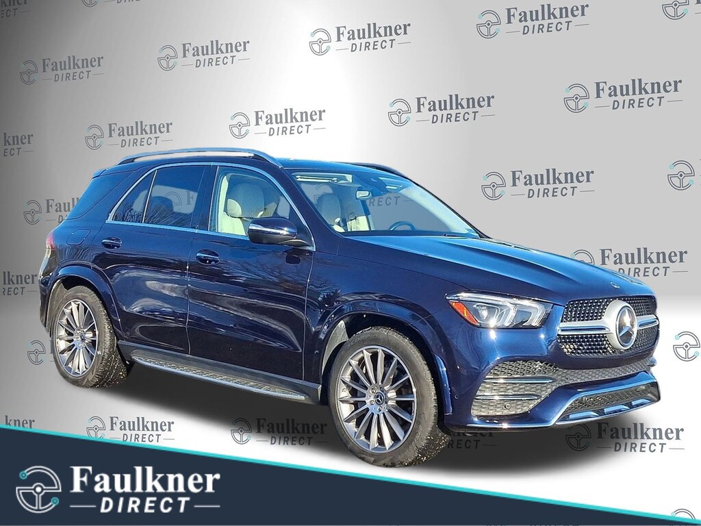 This Certified Pre-Owned 2022 GLE 350 4MATIC blends refined luxury with confident all-wheel-drive performance, showing 28,691 miles. Finished in Lunar Blue Metallic over Macchiato Beige/Black MB-Tex, its powered by a turbocharged 2.0L I4 paired with a 9-speed automatic transmission.