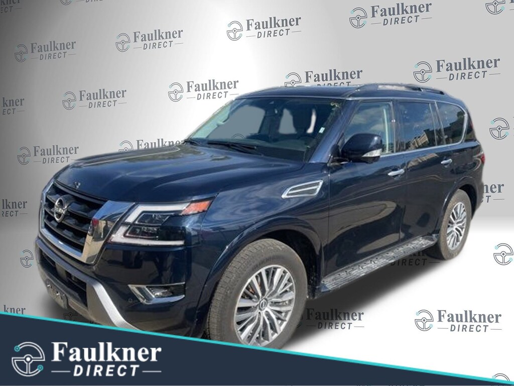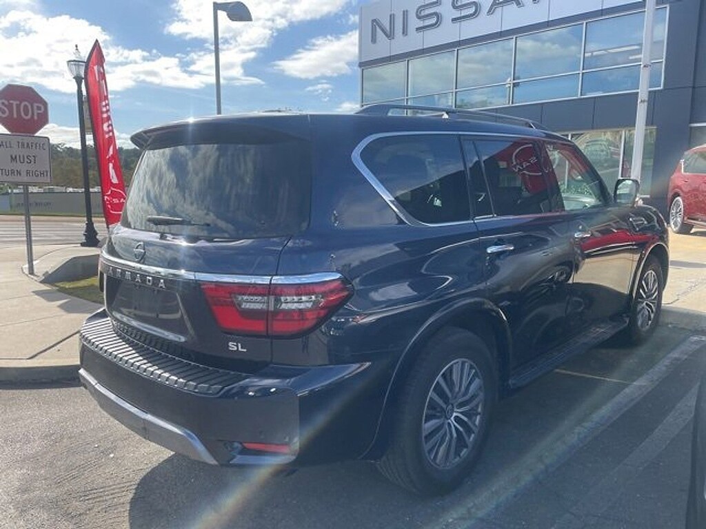 CARFAX One-Owner. Certified. Hermosa Blue Pearl 2023 Nissan Armada SL 4WD 7-Speed Automatic 5.6L V8 DOHC 32V LEV3-ULEV125 400hp 2nd Row Captain's Chairs, 2nd Row Center Console w/Padded Armrest, Captain's Chairs Package.