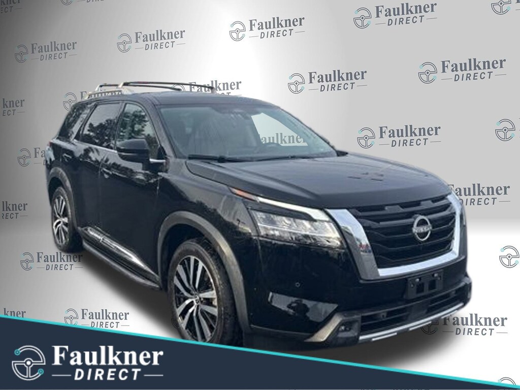Recent Arrival! Certified. 2023 Nissan Pathfinder Platinum Super Black *Schedule a test Drive at your home or office*, Nissan Certified Certified, 4WD, 13 Speakers, 2nd-Row Captain Chairs, 2nd-Row Removable Center Console, 3rd row seats: bench, 4-Wheel Disc Brakes, ABS brakes, Air Conditioning, Alloy wheels, AM/FM radio: SiriusXM, Auto High-beam Headlights, Auto tilt-away steering wheel, Auto-dimming Rear-View mirror, Automatic temperature control, Axle Ratio: 4.334, Bodyside moldings, Bose Premium Audio System, Brake assist, Bumpers: body-color, Captain's Chairs Carpeted Floor Mats (Set of 4), Cargo Area Protector, Cargo Net, Cargo Package, Cross Bars, Delay-off headlights, Driver door bin, Driver vanity mirror, Dual front impact airbags, Dual front side impact airbags, Electronic Stability Control, Emergency communication system: NissanConnect Services, Exterior Parking Camera Rear, First Aid Kit, Four wheel independent suspension, Front anti-roll bar, Front Bucket Seats, Front Center Armrest, Front dual zone A/C, Front reading lights, Fully automatic headlights, Garage door transmitter: HomeLink, Heads-Up Display, Heated & Cooled Front Bucket Seats, Heated door mirrors, Heated front seats, Heated rear seats, Heated steering wheel, Illuminated entry, Illuminated Kick Plate, Knee airbag, Leather steering wheel, LED Fog Lamps, Lighting Package (N93), Low tire pressure warning, Memory seat, Navigation system: NissanConnect Navigation, Nissan USB Charging Cable Set, NissanConnect w/Navigation & Services, Occupant sensing airbag, Outside temperature display, Overhead airbag, Overhead console, Panic alarm, Passenger door bin, Passenger vanity mirror, Platinum Captain Chairs Package, Power door mirrors, Power driver seat, Power Liftgate, Power moonroof, Power passenger seat, Power steering, Power windows, Radio data system, Radio: AM/FM Audio System, Rain sensing wipers, Rear air conditioning, Rear anti-roll bar, Rear reading lights, Rear seat center armrest, Rear side impact airbag, Rear window defroster, Rear window wiper, Reclining 3rd row seat, Remote keyless entry, Running Boards, Security system, Semi-Aniline Leather Seating Surfaces, Speed control, Speed-sensing steering, Speed-Sensitive Wipers, Split folding rear seat, Spoiler, Steering wheel memory, Steering wheel mounted audio controls, Tachometer, Telescoping steering wheel, Tilt steering wheel, Traction control, Trip computer, Turn signal indicator mirrors, Variably intermittent wipers, Ventilated front seats, Welcome Lighting, Wheels: 20 Machined Alloy w/Dark Met Gray Finish, 4WD.