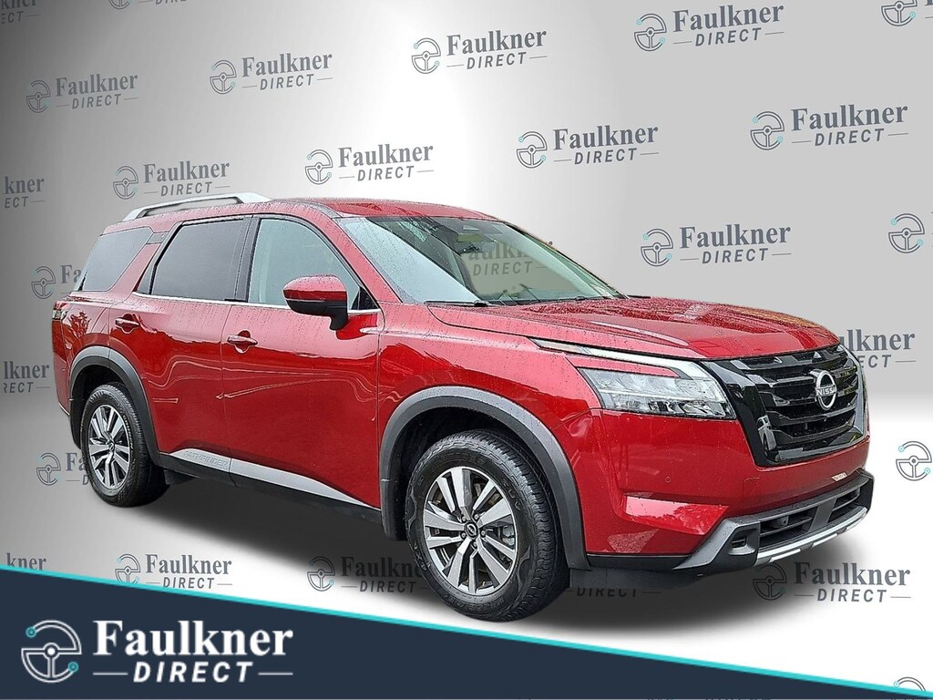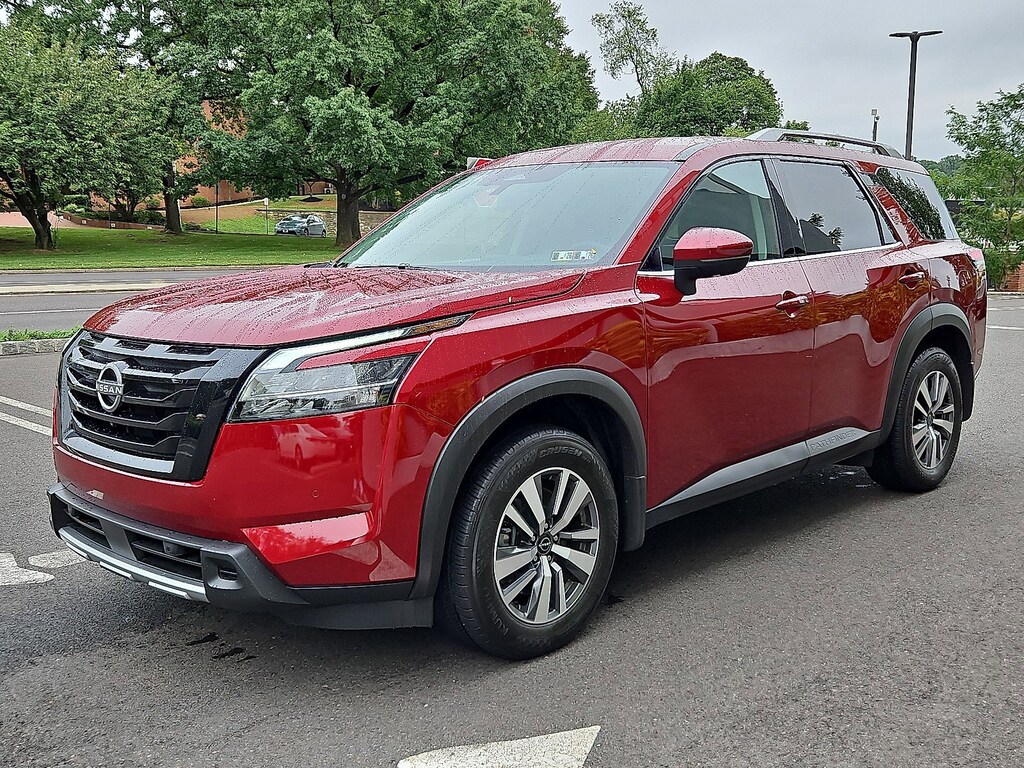 CARFAX One-Owner. Certified. Scarlet Ember Tintcoat 2023 Nissan Pathfinder SL 4WD 9-Speed Automatic V6 Black Appearance Package, Black Grille (K10), Black Liftgate Emblems, Pathfinder Wordmark.