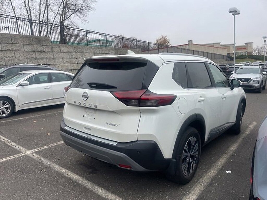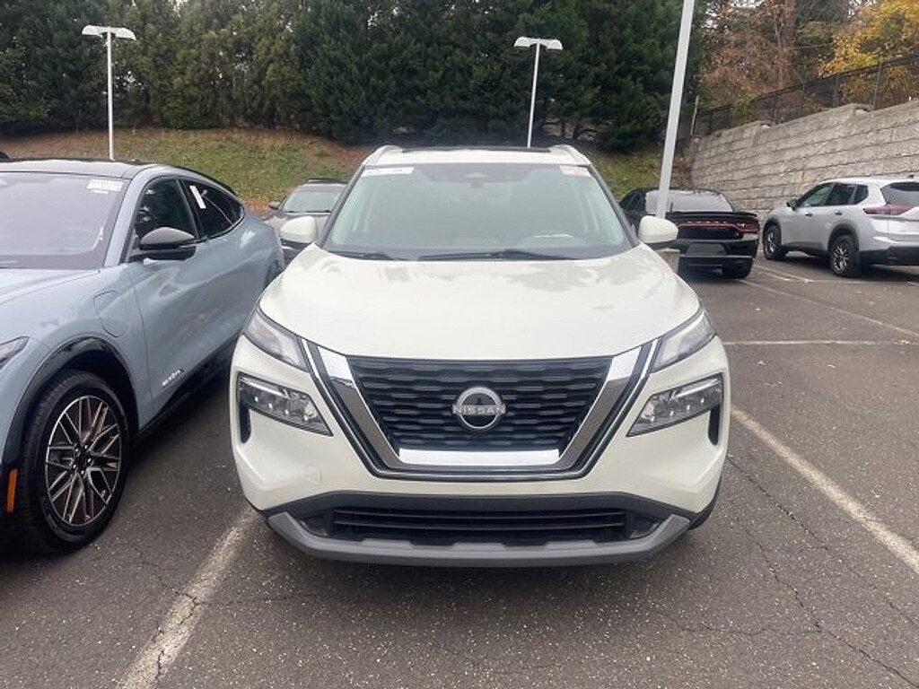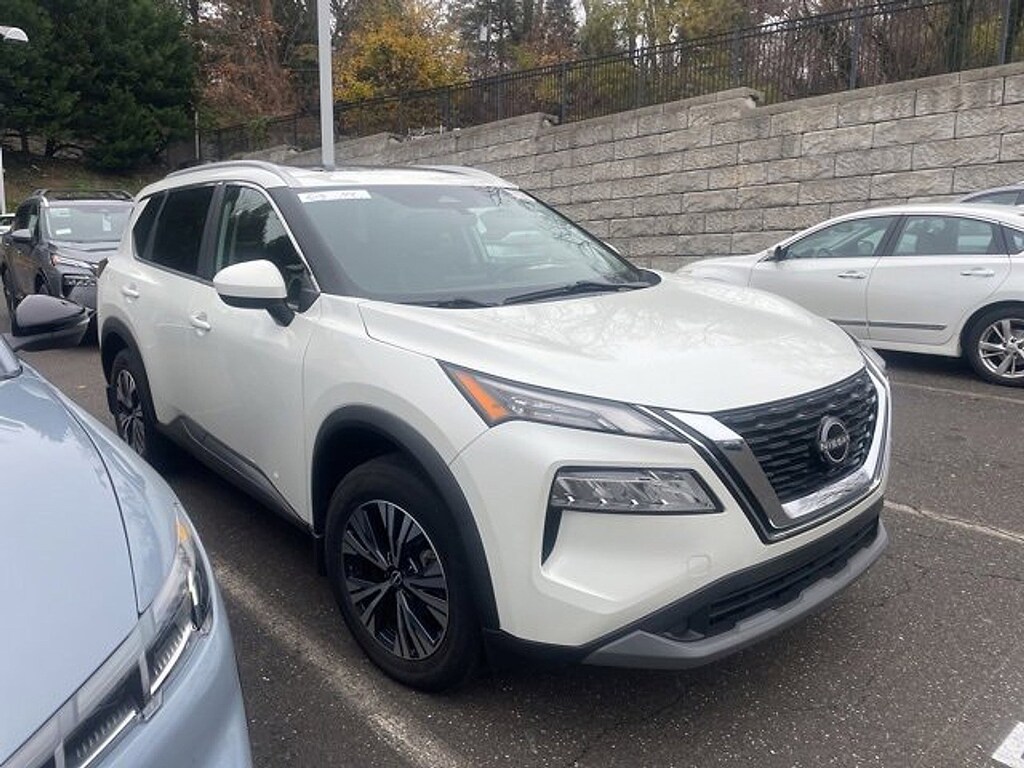 CARFAX One-Owner. Certified. Pearl White Tricoat 2023 Nissan Rogue SV AWD CVT with Xtronic 1.5L I3 Turbocharged DOHC 12V LEV3-ULEV50 201hp Heated Driver & Front Passenger Seats, Heated Leather Wrapped Steering Wheel, Leatherette Door Trim Inserts w/Stitch, NissanConnect featuring Apple CarPlay and Android Auto, Panoramic Moonroof, Power Liftgate, PRIMATEX Leatherette Seat Trim, Rear Door Sunshades, Rear Personal Lights, Security Alarm, Silver Painted Roof Rails, SV Premium B Package.