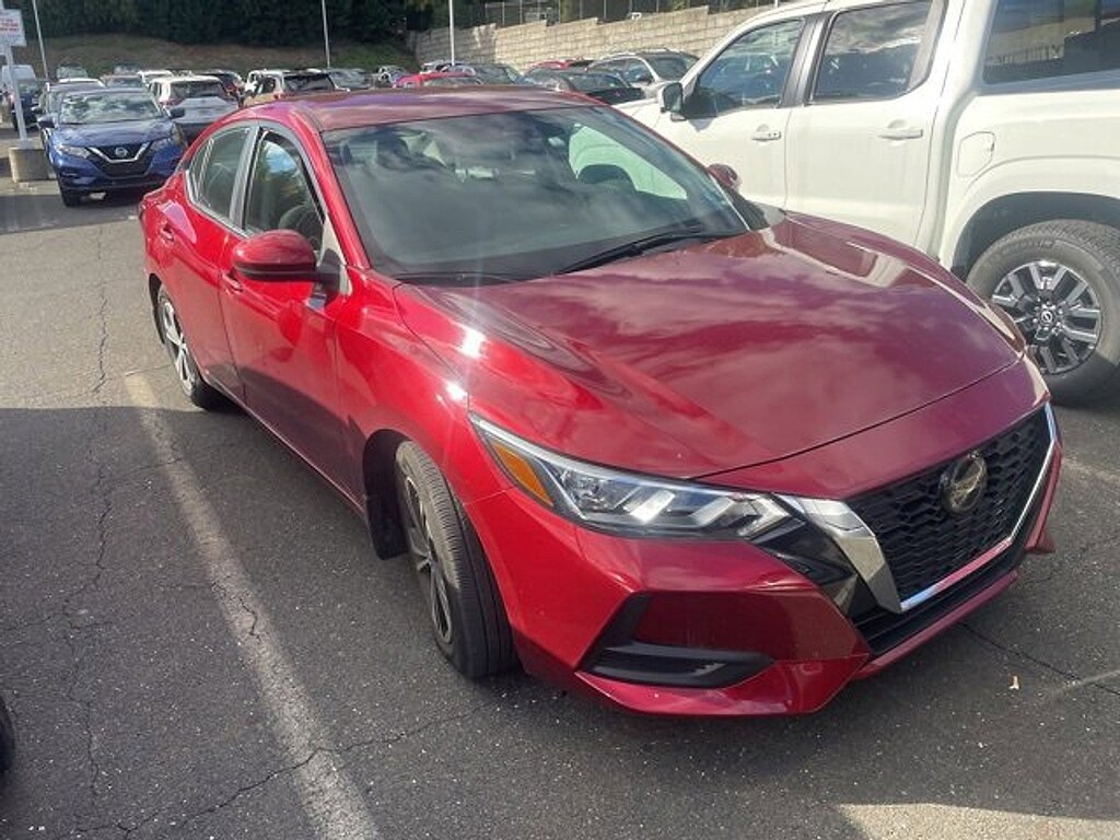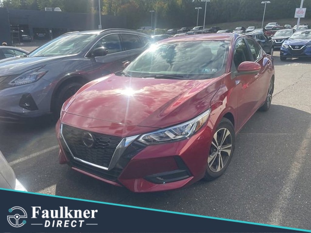 CARFAX One-Owner. Certified. Scarlet Ember Tintcoat 2023 Nissan Sentra SV FWD CVT with Xtronic 2.0L DOHC All-Weather Package, Dual Zone Auto Climate Control, Heated Front Seats, Hide-A-Way Trunk Net, Leather-Wrapped Heated Steering Wheel, NissanConnect featuring Apple CarPlay and Android Auto, Remote Engine Start, Trunk Package.