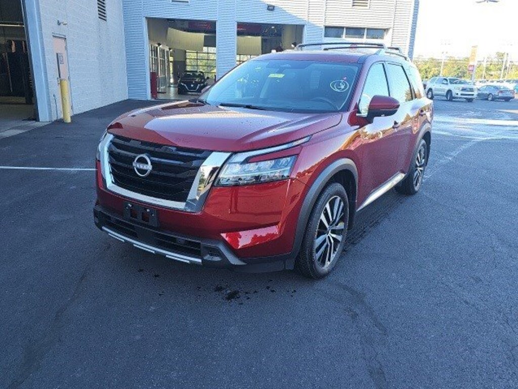 Recent Arrival! Certified. 2024 Nissan Pathfinder Platinum Scarlet Ember *Schedule a test Drive at your home or office*, Nissan Certified Certified, 4WD, 13 Speakers, 3rd row seats: bench, 4-Wheel Disc Brakes, ABS brakes, Air Conditioning, Alloy wheels, AM/FM radio: SiriusXM, Auto High-beam Headlights, Auto tilt-away steering wheel, Auto-dimming Rear-View mirror, Automatic temperature control, Axle Ratio: 4.334, Bench Seat Carpeted Floor Mats (Set of 4), Black Splash Guards (Set of 4), Bodyside moldings, Bose Premium Audio System, Brake assist, Bumpers: body-color, Cargo Area Protector, Cargo Net, Cargo Package, Cross Bars, Delay-off headlights, Driver door bin, Driver vanity mirror, Dual front impact airbags, Dual front side impact airbags, Electronic Stability Control, Emergency communication system, Exterior Parking Camera Rear, First Aid Kit, Four wheel independent suspension, Front anti-roll bar, Front Bucket Seats, Front Center Armrest, Front dual zone A/C, Front reading lights, Fully automatic headlights, Garage door transmitter: HomeLink, Heads-Up Display, Heated & Cooled Front Bucket Seats, Heated door mirrors, Heated front seats, Heated rear seats, Heated steering wheel, Illuminated entry, Knee airbag, Leather steering wheel, Low tire pressure warning, Memory seat, Navigation system: NissanConnect with Navigation and Services, Nissan USB Charging Cable Set, NissanConnect featuring Apple CarPlay and Android Auto, NissanConnect w/Navigation & Services, Occupant sensing airbag, Outside temperature display, Overhead airbag, Overhead console, Panic alarm, Passenger door bin, Passenger vanity mirror, Power door mirrors, Power driver seat, Power Liftgate, Power moonroof, Power passenger seat, Power steering, Power windows, Radio data system, Radio: AM/FM Audio System, Rain sensing wipers, Rear air conditioning, Rear anti-roll bar, Rear reading lights, Rear seat center armrest, Rear side impact airbag, Rear window defroster, Rear window wiper, Reclining 3rd row seat, Remote keyless entry, Security system, Semi-Aniline Leather-Appointed Seating Surfaces, Speed control, Speed-sensing steering, Speed-Sensitive Wipers, Split folding rear seat, Spoiler, Steering wheel memory, Steering wheel mounted audio controls, Tachometer, Telescoping steering wheel, Tilt steering wheel, Traction control, Trip computer, Turn signal indicator mirrors, Variably intermittent wipers, Ventilated front seats, Wheels: 20 x 8J Machined Alloy, 4WD.