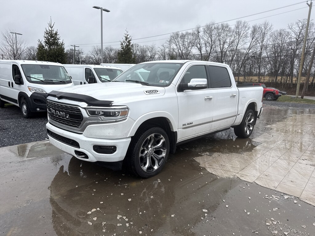 Recent Arrival! Certified. Clean CARFAX. Bright White Clearcoat This 1500 Limited is nicely equipped with Bed Utility Group, Body Color Bumper Group (Body Color Front Bumper and Body Color Rear Bumper w/Step Pads), Limited Level 1 Equipment Group (Adaptive Cruise Control w/Stop & Go, Full Speed Forward Collision Warning Plus, Lane Keep Assist, Parallel & Perp Park Assist w/Stop, and Ventilated Rear Seats), Quick Order Package 27M Limited, FCA US LLC Certified Pre-Owned Certified, 10 Speakers, 4-Wheel Disc Brakes, 48V Belt Starter Generator, ABS brakes, Adjustable pedals, Air Conditioning, Alloy wheels, AM/FM radio: SiriusXM with 360L, Apple CarPlay/Android Auto, Audio memory, Auto High-beam Headlights, Auto-dimming door mirrors, Auto-dimming Rear-View mirror, Auto-leveling suspension, Automatic temperature control, Bodyside moldings, Brake assist, Bumpers: chrome, Compass, Delay-off headlights, Dome Dual LED Reading Lamp, Driver door bin, Driver vanity mirror, Dual front impact airbags, Dual front side impact airbags, Dual-Pane Panoramic Sunroof, Electronic Stability Control, Emergency communication system: SiriusXM Guardian, Front anti-roll bar, Front Bucket Seats, Front Center Armrest w/Storage, Front dual zone A/C, Front fog lights, Front reading lights, Front wheel independent suspension, Fully automatic headlights, Garage door transmitter, Genuine wood console insert, Genuine wood dashboard insert, Genuine wood door panel insert, Heated door mirrors, Heated front seats, Heated rear seats, Heated steering wheel, Illuminated entry, Leather steering wheel, LED Dome/Reading Lamp, Low tire pressure warning, Manufacturer's Statement of Origin, Memory seat, Navigation System, Occupant sensing airbag, Outside temperature display, Overhead airbag, Overhead console, Panic alarm, ParkView Rear Back-Up Camera, Passenger door bin, Passenger vanity mirror, Pedal memory, Power door mirrors, Power driver seat, Power passenger seat, Power steering, Power windows, Premium Leather Trimmed Bucket Seats, Radio data system, Radio: Uconnect 12 w/Navigation, Rain sensing wipers, Rear anti-roll bar, Rear seat center armrest, Rear step bumper, Rear window defroster, Remote keyless entry, Security system, Speed control, Split folding rear seat, Steering wheel mounted audio controls, Tachometer, Telescoping steering wheel, Tilt steering wheel, Traction control, Trailer Brake Control, Trip computer, Turn signal indicator mirrors, Variably intermittent wipers, Ventilated front seats, Voltmeter, Wheels: 20 x 9 Polished w/Inserts, and Wheels: 22 x 9 Polish/Painted w/Inserts.