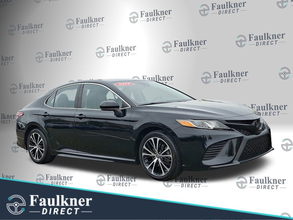 Certified. 2019 Toyota Camry Midnight Black Metallic Local Trade-in, Fresh Oil Change, Camry SE, 2.5L I4 DOHC 16V, FWD, Black Cloth, ABS brakes, Active Cruise Control, Alloy wheels, Electronic Stability Control, Illuminated entry, Low tire pressure warning, Navigation System, Remote keyless entry, Traction control. Clean CARFAX.