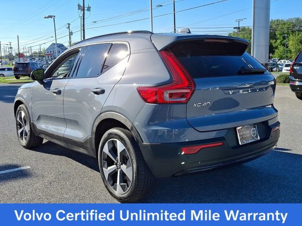 Certified. Thunder Gray Metallic 2023 Volvo XC40 B5 Plus Dark Theme AWD Automatic with Geartronic 2.0L I4 Turbocharged DOHC 16V LEV3-ULEV70 4D Sport Utility 360 Surround View Camera, Climate Package, Driver Assist Package, Heated Rear Seats, Heated Steering Wheel, Pilot Assist Driver Assistance System, 4-Wheel Disc Brakes, 8 Speakers, ABS brakes, Air Conditioning, Alloy wheels, AM/FM Radio, AM/FM radio: SiriusXM, Apple CarPlay, Auto High-beam Headlights, Auto-dimming door mirrors, Auto-dimming Rear-View mirror, Automatic temperature control, Brake assist, Bumpers: body-color, Connect Suede Textile/Microtech Seating Surfaces, Delay-off headlights, Driver door bin, Driver vanity mirror, Dual front impact airbags, Dual front side impact airbags, Electronic Stability Control, Emergency communication system: Volvo Cars App w/4 Year Subscription, Exterior Parking Camera Rear, Four wheel independent suspension, Front anti-roll bar, Front Bucket Seats, Front Center Armrest, Front dual zone A/C, Front fog lights, Front reading lights, Fully automatic headlights, Garage door transmitter: HomeLink, Heated door mirrors, Heated front seats, Illuminated entry, Internet access capable: Digital Services Package w/ 4 Year Subscription, Knee airbag, Low tire pressure warning, Memory seat, Navigation System, Occupant sensing airbag, Outside temperature display, Overhead airbag, Overhead console, Panic alarm, Passenger door bin, Passenger vanity mirror, Power door mirrors, Power driver seat, Power moonroof, Power passenger seat, Power steering, Power windows, Radio data system, Rain sensing wipers, Rear anti-roll bar, Rear fog lights, Rear reading lights, Rear seat center armrest, Rear window defroster, Rear window wiper, Remote keyless entry, Security system, Speed control, Speed-sensing steering, Split folding rear seat, Spoiler, Steering wheel mounted audio controls, Tachometer, Telescoping steering wheel, Tilt steering wheel, Traction control, Trip computer, Turn signal indicator mirrors, Variably intermittent wipers, Wheels: 18" 5-Double Spoke Black Diamond Cut Alloy, 360 Surround View Camera, Climate Package, Driver Assist Package, Heated Rear Seats, Heated Steering Wheel, Pilot Assist Driver Assistance System.