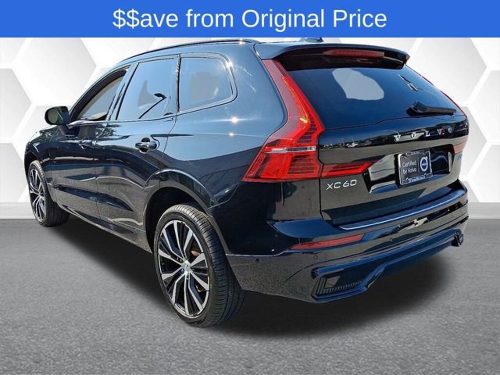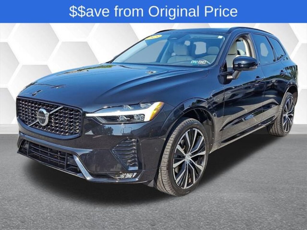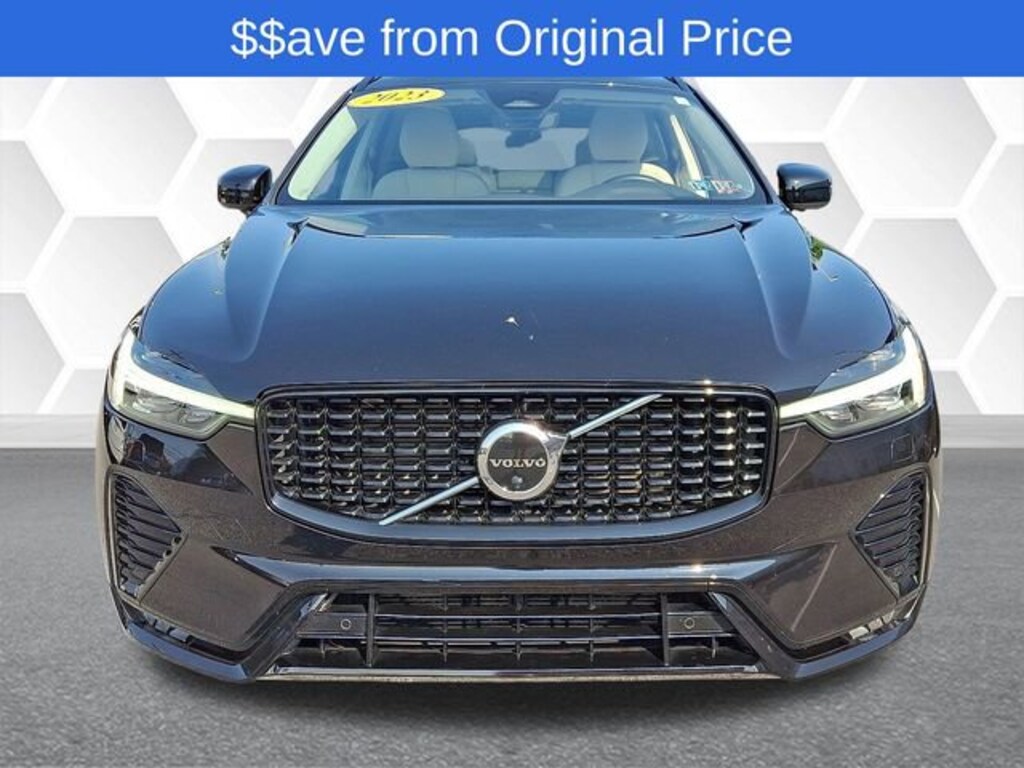 Certified. Black 2023 Volvo XC60 B5 Plus Dark Theme AWD Automatic with Geartronic 2.0L I4 Turbocharged 4D Sport Utility 10 Speakers, 4-Wheel Disc Brakes, ABS brakes, Air Conditioning, Alloy wheels, AM/FM radio: SiriusXM, Anti-whiplash front head restraints, Apple CarPlay, Auto High-beam Headlights, Auto-dimming door mirrors, Auto-dimming Rear-View mirror, Automatic temperature control, Brake assist, Bumpers: body-color, Cargo Tray, Climate Package, Delay-off headlights, Driver door bin, Driver vanity mirror, Dual front impact airbags, Dual front side impact airbags, Electronic Stability Control, Emergency communication system: Volvo Cars App w/4 Year Subscription, Exterior Parking Camera Rear, Four wheel independent suspension, Front anti-roll bar, Front Bucket Seats, Front Center Armrest, Front dual zone A/C, Front fog lights, Front reading lights, Fully automatic headlights, Garage door transmitter: HomeLink, Genuine wood console insert, Genuine wood dashboard insert, Heated door mirrors, Heated Front Bucket Seats, Heated front seats, Heated Rear Seats, Heated Steering Wheel, Illuminated entry, Knee airbag, Leather Shift Knob, Leather Upholstery, Low tire pressure warning, Memory seat, Occupant sensing airbag, Outside temperature display, Overhead airbag, Panic alarm, Passenger door bin, Passenger vanity mirror, Power door mirrors, Power driver seat, Power moonroof, Power Operated Tailgate, Power passenger seat, Power steering, Power windows, Protection Package, Radio data system, Radio: harman/kardon Premium Sound, Radio: High Performance Audio System, Rain sensing wipers, Rear anti-roll bar, Rear fog lights, Rear reading lights, Rear seat center armrest, Rear window defroster, Rear window wiper, Remote keyless entry, Rubber Floor Mats, Security system, Speed control, Split folding rear seat, Spoiler, Steering wheel mounted audio controls, Tachometer, Telescoping steering wheel, Tilt steering wheel, Traction control, Trip computer, Turn signal indicator mirrors, Variably intermittent wipers, Wheels: 20" 5-Y Spoke Black Diamond Cut Alloy.