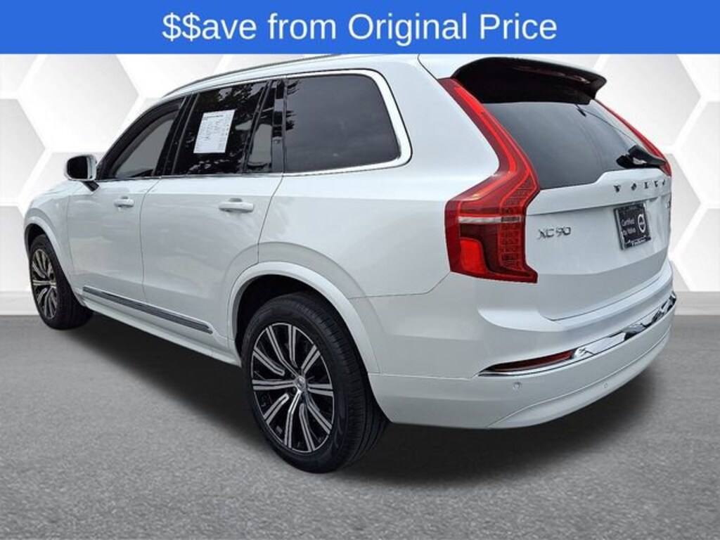 Certified. Crystal White Metallic 2024 Volvo XC90 B5 Core AWD Automatic with Geartronic 2.0L I4 Turbocharged DOHC 16V LEV3-ULEV70 4D Sport Utility Wheels: 20" 10-Spoke Black Diamond Cut Alloy, 10 Speakers, 3rd row seats: bucket, 4-Wheel Disc Brakes, ABS brakes, Air Conditioning, Alloy wheels, AM/FM radio: SiriusXM, Anti-whiplash front head restraints, Apple CarPlay, Auto High-beam Headlights, Auto-dimming door mirrors, Auto-dimming Rear-View mirror, Automatic temperature control, Brake assist, Bumpers: body-color, Delay-off headlights, Driver door bin, Driver vanity mirror, Dual front impact airbags, Dual front side impact airbags, Electronic Stability Control, Emergency communication system: Volvo Cars App w/4 Year Subscription, Exterior Parking Camera Rear, Four wheel independent suspension, Front anti-roll bar, Front Bucket Seats, Front Center Armrest w/Storage, Front dual zone A/C, Front fog lights, Front reading lights, Fully automatic headlights, Garage door transmitter: HomeLink, Heated door mirrors, Heated Front Bucket Seats, Heated front seats, Illuminated entry, Knee airbag, Leather Shift Knob, Leatherette Upholstery, Low tire pressure warning, Memory seat, Navigation System, Occupant sensing airbag, Outside temperature display, Overhead airbag, Panic alarm, Passenger door bin, Passenger vanity mirror, Power door mirrors, Power driver seat, Power Liftgate, Power moonroof, Power passenger seat, Power steering, Power windows, Radio data system, Radio: High Performance Audio System, Rain sensing wipers, Rear air conditioning, Rear anti-roll bar, Rear dual zone A/C, Rear fog lights, Rear reading lights, Rear seat center armrest, Rear window defroster, Rear window wiper, Remote keyless entry, Security system, Speed control, Speed-sensing steering, Split folding rear seat, Spoiler, Steering wheel mounted audio controls, Tachometer, Telescoping steering wheel, Traction control, Trip computer, Turn signal indicator mirrors, Variably intermittent wipers, Wheels: 20" 10-Spoke Black Diamond Cut Alloy.