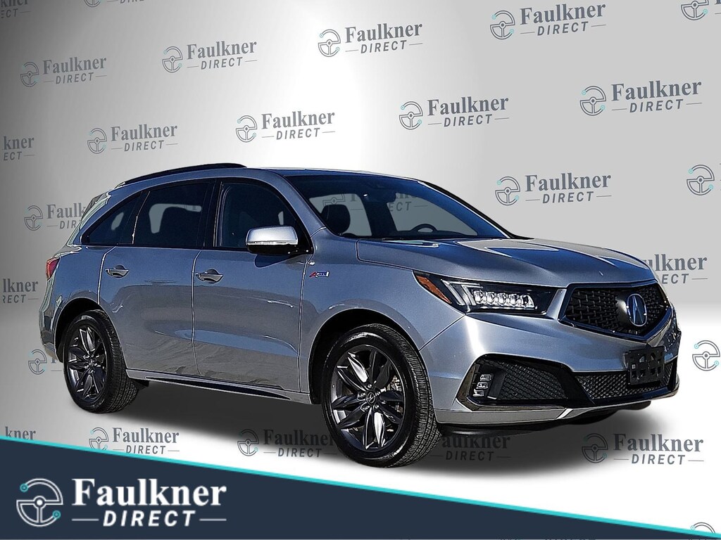 Clean CARFAX. Silver 2019 Acura MDX 3.5L Technology Pkg w/A-Spec Pkg SH-AWD AWD 9-Speed Automatic 3.5L V6 SOHC i-VTEC 24V 4D Sport Utility Leather, 3rd row seats: bench, Adaptive suspension, Exterior Parking Camera Rear, Memory seat, Power Liftgate, Power moonroof, Premium audio system: Acura/ELS Surround.