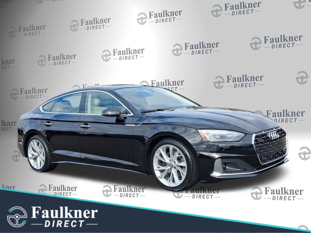 2021 Audi A5 Brilliant Black Local Trade-in, Fresh Oil Change, quattro, Beige Leather. CARFAX One-Owner.