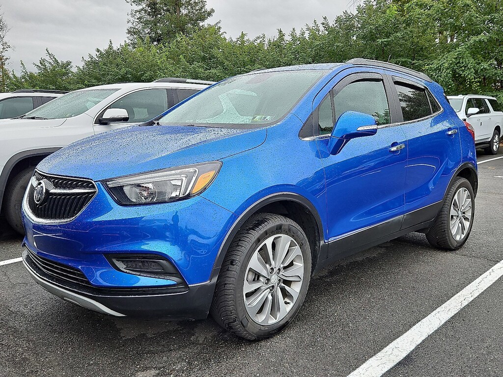 2018 Buick Encore Preferred Brilliant Blue Metallic 2-Way Manual Front Passenger Seat Adjuster, 3.53 Final Drive Axle Ratio, 4-Wheel Disc Brakes, 6 Speakers, 6-Speaker Audio System, 6-Way Power Driver Seat Adjuster, ABS brakes, Air Conditioning, Alloy wheels, AM/FM radio: SiriusXM, Apple CarPlay/Android Auto, Brake assist, Bumpers: body-color, Cloth w/Leatherette Seat Trim, Compass, Delay-off headlights, Driver door bin, Driver vanity mirror, Driver's Seat Mounted Armrest, Dual front impact airbags, Dual front side impact airbags, Electronic Stability Control, Emergency communication system: OnStar Guidance, Exterior Parking Camera Rear, Front anti-roll bar, Front Bucket Seats, Front reading lights, Front wheel independent suspension, Fully automatic headlights, Heated door mirrors, Illuminated entry, Knee airbag, Low tire pressure warning, Occupant sensing airbag, Outside temperature display, Overhead airbag, Panic alarm, Passenger door bin, Passenger vanity mirror, Power door mirrors, Power driver seat, Power steering, Power windows, Preferred Equipment Group 1SB, Radio data system, Radio: Buick Infotainment System AM/FM Stereo, Rear seat center armrest, Rear side impact airbag, Rear window defroster, Rear window wiper, Remote keyless entry, Remote Vehicle Starter System, Ride & Handling Suspension, Roof rack: rails only, Security system, SiriusXM Satellite Radio, Speed control, Speed-sensing steering, Split folding rear seat, Spoiler, Steering wheel mounted audio controls, Tachometer, Telescoping steering wheel, Tilt steering wheel, Traction control, Trip computer, Turn signal indicator mirrors, Variably intermittent wipers, Wheels: 18 Machined-Face Alloy.