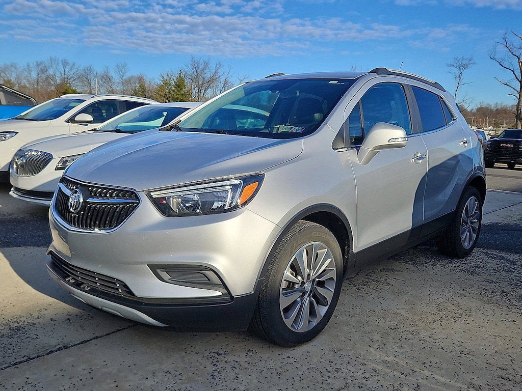 2019 Buick Encore Preferred Quicksilver Metallic 120-Volt Power Outlet, 2-Way Manual Front Passenger Seat Adjuster, 3.53 Final Drive Axle Ratio, 4-Wheel Disc Brakes, 6 Speakers, 6-Speaker Audio System, 6-Way Power Driver Seat Adjuster, ABS brakes, Air Conditioning, Alloy wheels, AM/FM radio: SiriusXM, Apple CarPlay/Android Auto, Brake assist, Bumpers: body-color, Cloth w/Leatherette Seat Trim, Compass, Delay-off headlights, Driver door bin, Driver vanity mirror, Driver's Seat Mounted Armrest, Dual front impact airbags, Dual front side impact airbags, Electronic Stability Control, Emergency communication system: OnStar and Buick connected services capable, Exterior Parking Camera Rear, Front anti-roll bar, Front Bucket Seats, Front reading lights, Front wheel independent suspension, Fully automatic headlights, Heated door mirrors, Illuminated entry, Knee airbag, Low tire pressure warning, Occupant sensing airbag, Outside temperature display, Overhead airbag, Panic alarm, Passenger door bin, Passenger vanity mirror, Power door mirrors, Power driver seat, Power steering, Power windows, Preferred Equipment Group 1SB, Radio data system, Radio: Buick Infotainment System AM/FM Stereo, Rear Cross Traffic Alert, Rear seat center armrest, Rear side impact airbag, Rear window defroster, Rear window wiper, Remote keyless entry, Remote Vehicle Starter System, Ride & Handling Suspension, Roof rack: rails only, Safety Package, Security system, Side Blind Zone Alert, SiriusXM Radio, Speed control, Speed-sensing steering, Split folding rear seat, Spoiler, Steering wheel mounted audio controls, Tachometer, Telescoping steering wheel, Tilt steering wheel, Traction control, Trip computer, Turn signal indicator mirrors, Variably intermittent wipers, Wheels: 18 Machined-Face Alloy.