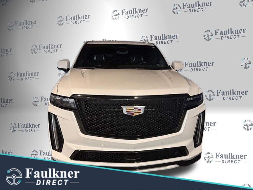 Recent Arrival! CARFAX One-Owner. Clean CARFAX. Crystal White Tricoat 2023 Cadillac Escalade V-Series AWD, Jet Black Leather.
