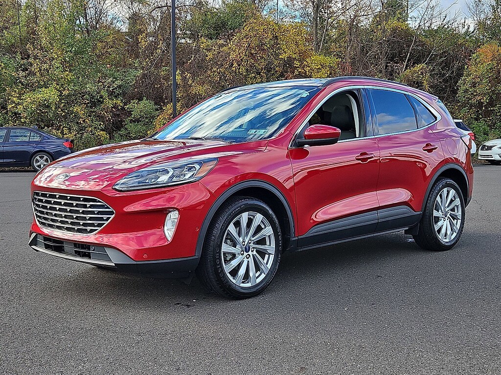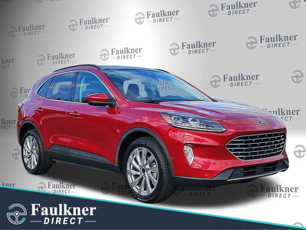 Clean CARFAX. Rapid Red Metallic Tinted Clearcoat 2021 Ford Escape Titanium AWD 8-Speed Automatic EcoBoost 2.0L I4 GTDi DOHC Turbocharged VCT Just Inspected, AWD, 10 Speakers, 4-Wheel Disc Brakes, ABS brakes, AM/FM radio: SiriusXM, Black Roof-Rack Side Rails, Chrome 5-Bar Upper Grille w/Chrome Surround, Equipment Group 401A, Front & Rear Floor Mats, Head-Up Display, Heated Leather-Trimmed Front Sport Contour Seats, Leather Wrapped Steering Wheel, Memory seat, Navigation System, Panoramic Vista Roof, Power Liftgate, Titanium Elite Package, Traction control, Wheels: 19 Luster Nickel-Painted Aluminum, Wireless Charging Pad.