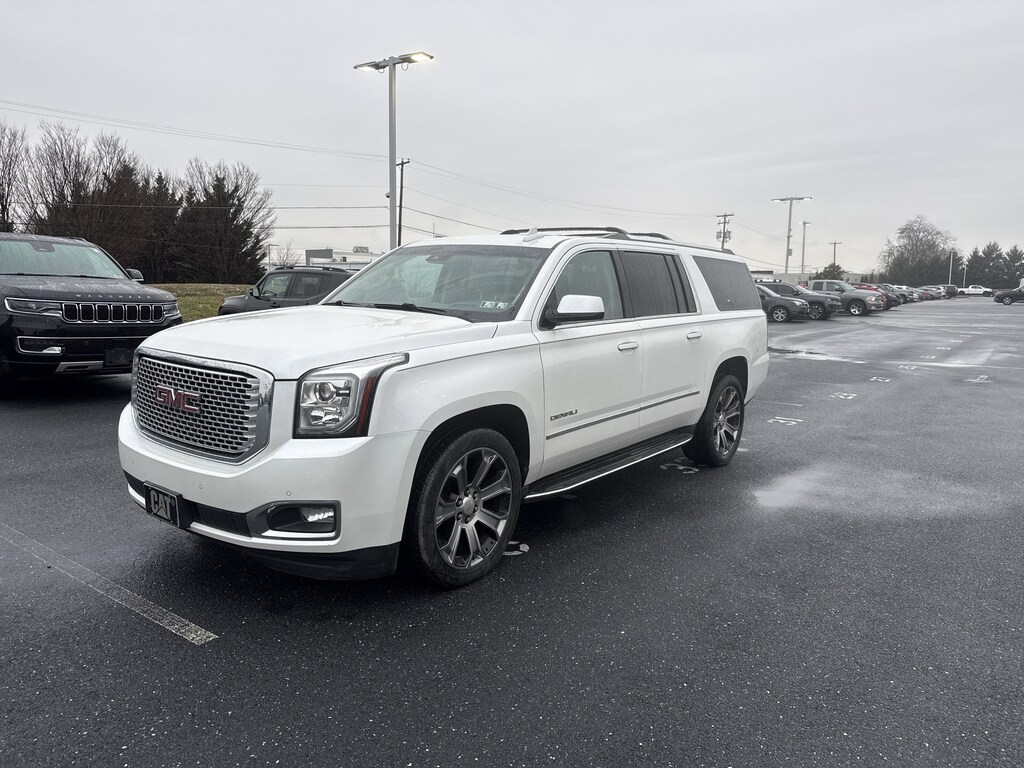 Recent Arrival! Clean CARFAX. White Frost Tricoat This Yukon XL Denali is nicely equipped with Enhanced Driver Alert Package (Forward Collision Alert Sensor Indicator, Intellibeam Automatic High Beam On/Off Headlamps, Lane Keep Assist, and Low Speed Forward Automatic Braking), Magnetic Ride Control Suspension Package, Memory Package, Open Road Package (3rd Row DVD Screen, Power Tilt-Sliding Sunroof w/Express-Open/Close, and Rear Seat Blu-Ray/DVD Entertainment System), Preferred Equipment Group 5SA (17 Disc/Disc VAC Power Brakes, 5 Auxiliary 12-volt Power Outlets, Black Assist Steps w/Chrome Strip, Hands Free Power Liftgate, Heated Leather-Wrapped Steering Wheel, Inside Rear-View Auto-Dimming Mirror, Integrated Trailer Brake Controller, OnStar Basic Plan For 5 Years, OnStar w/4G LTE, Passive Entry System, Power Release Second Row Bucket Seats, Power Tilt & Telescopic Steering Column, Power-Adjustable Pedals For Accelerator & Brake, Push Button Keyless Start, Rear Cross-Traffic Alert, Remote Keyless Entry, Side Blind Zone Alert w/Lane Change Alert, Universal Home Remote, and Wireless Charging), 4WD, Apple CarPlay/Android Auto, Bose Centerpoint Premium 10-Speaker Surround Sound, Exterior Parking Camera Rear, Heated & Ventilated Driver & Front Passenger Seats, Heated rear seats, Heated steering wheel, Navigation System, Rain sensing wipers, SiriusXM Satellite Radio, 10 Speakers, 3.23 Axle Ratio, 3rd row seats: split-bench, 4-Wheel Disc Brakes, ABS brakes, Adaptive suspension, Adjustable pedals, Air Conditioning, Alloy wheels, AM/FM radio: SiriusXM, Auto High-beam Headlights, Auto-dimming door mirrors, Auto-dimming Rear-View mirror, Automatic temperature control, Bodyside moldings, Brake assist, Bumpers: body-color, CD Player, CD player, Compass, Delay-off headlights, Driver door bin, Driver vanity mirror, Dual front impact airbags, Dual front side impact airbags, Electronic Stability Control, Emergency communication system: OnStar Guidance, Front anti-roll bar, Front Bucket Seats, Front Center Armrest, Front dual zone A/C, Front fog lights, Front reading lights, Front wheel independent suspension, Full-Feature Reclining Bucket Seats, Fully automatic headlights, Garage door transmitter, Genuine wood console insert, Genuine wood dashboard insert, Genuine wood door panel insert, Heads-Up Display, Heated door mirrors, Heated front seats, High-Intensity Discharge Headlights, Illuminated entry, Leather Shift Knob, Low tire pressure warning, Memory seat, NavTraffic, Occupant sensing airbag, Outside temperature display, Overhead airbag, Overhead console, Panic alarm, Passenger door bin, Passenger vanity mirror, Pedal memory, Perforated Leather-Appointed Seat Trim, Power door mirrors, Power driver seat, Power Liftgate, Power passenger seat, Power steering, Power windows, Premium audio system: IntelliLink, Radio: AM/FM/SiriusXM w/Navigation, Rear air conditioning, Rear anti-roll bar, Rear reading lights, Rear window defroster, Rear window wiper, Remote keyless entry, Roof rack: rails only, Security system, Speed control, Speed-sensing steering, Split folding rear seat, Spoiler, Steering wheel memory, Steering wheel mounted audio controls, Tachometer, Telescoping steering wheel, Tilt steering wheel, Traction control, Trip computer, Turn signal indicator mirrors, Variably intermittent wipers, Ventilated front seats, Voltmeter, Wheels: 20 x 9 Ultra Bright Machined Aluminum, Wheels: 22 7-Spoke Silver w/Black Inserts (LPO), and Wheels: 22 x 9 Steel Interim (LPO) 4WD, 17 Disc/Disc VAC Power Brakes, 3rd Row DVD Screen, 5 Auxiliary 12-volt Power Outlets, Apple CarPlay/Android Auto, Black Assist Steps w/Chrome Strip, Bose Centerpoint Premium 10-Speaker Surround Sound, Enhanced Driver Alert Package, Exterior Parking Camera Rear, Forward Collision Alert Sensor Indicator, Hands Free Power Liftgate, Heated & Ventilated Driver & Front Passenger Seats, Heated Leather-Wrapped Steering Wheel, Heated rear seats, Heated steering wheel, Inside Rear-