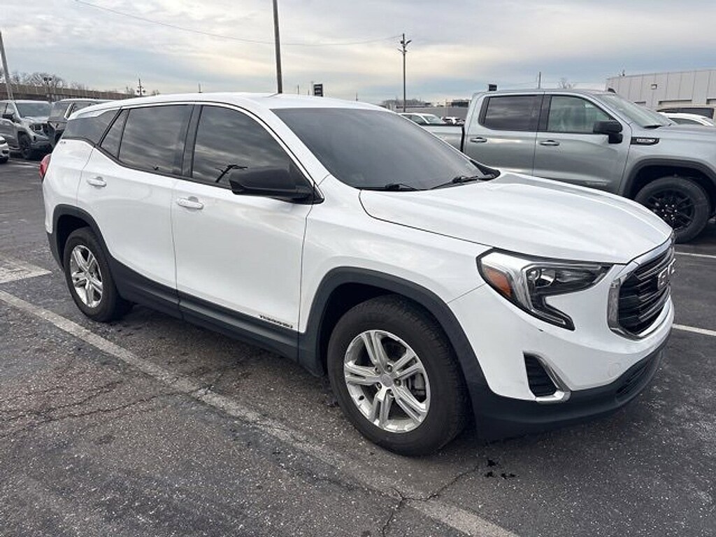 2018 GMC Terrain SLE Summit White 2 USB Data Ports w/Auxiliary Input Jack, 3.47 Axle Ratio, 4-Way Manual Driver's Seat, 4-Way Manual Front Passenger Seat, 4-Wheel Disc Brakes, 6 Speakers, 6-Speaker Audio System Feature, ABS brakes, Air Conditioning, Alloy wheels, AM/FM radio, Apple CarPlay/Android Auto, Auto-dimming Rear-View mirror, Bluetooth® For Phone, Brake assist, Bumpers: body-color, Compass, Delay-off headlights, Driver door bin, Driver vanity mirror, Dual front impact airbags, Dual front side impact airbags, Electronic Stability Control, Emergency communication system: OnStar Guidance, Exterior Parking Camera Rear, Four wheel independent suspension, Front anti-roll bar, Front Bucket Seats, Front Center Armrest, Front reading lights, Fully automatic headlights, Heated door mirrors, High-Intensity Discharge Headlights, Illuminated entry, Low tire pressure warning, Occupant sensing airbag, Outside temperature display, Overhead airbag, Overhead console, Panic alarm, Passenger door bin, Passenger vanity mirror, Power door mirrors, Power steering, Power windows, Preferred Equipment Group 3SA, Premium Cloth Seat Trim, Radio data system, Radio: GMC Infotainment Audio System w/7 Display, Rear anti-roll bar, Rear seat center armrest, Rear window defroster, Rear window wiper, Remote keyless entry, Security system, Speed control, Speed-sensing steering, Split folding rear seat, Spoiler, Steering wheel mounted audio controls, Tachometer, Telescoping steering wheel, Tilt steering wheel, Traction control, Trip computer, Variably intermittent wipers, Wheels: 17 x 7 Silver Painted Aluminum.