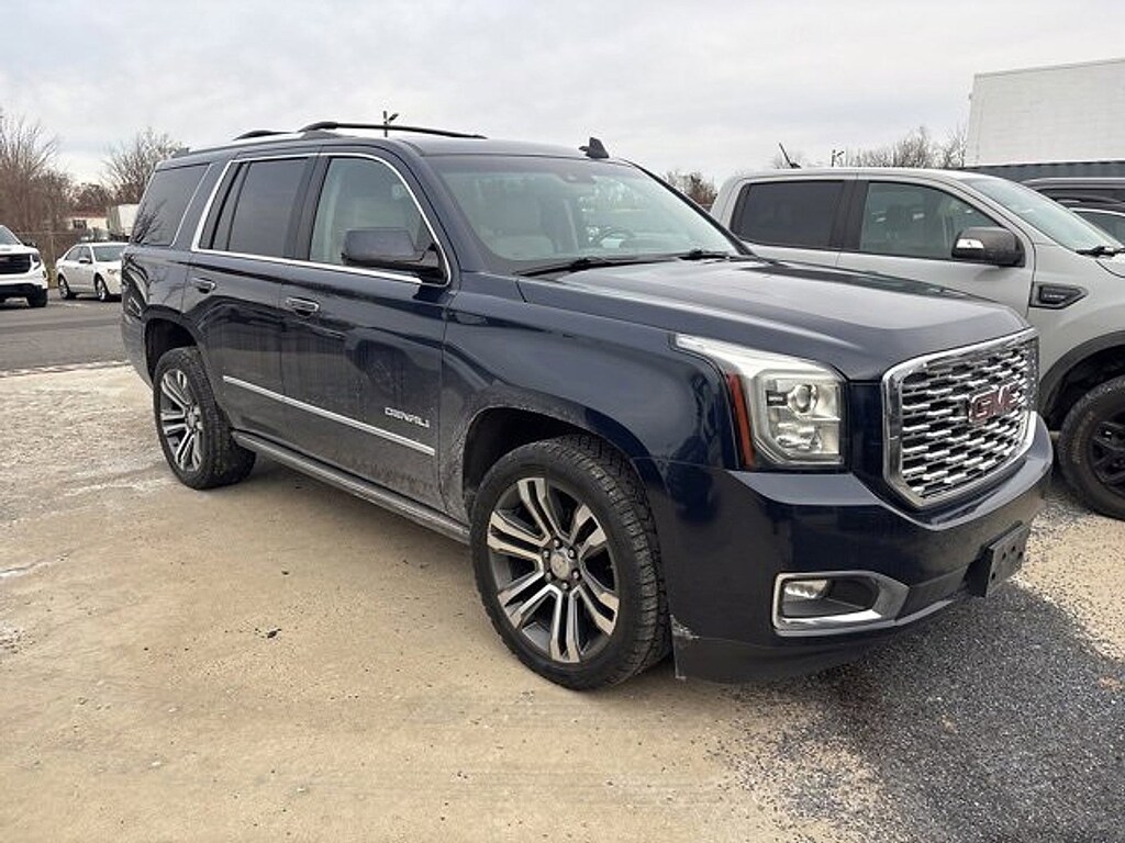 2018 GMC Yukon Denali Dark Sapphire Blue Metallic 4WD, 10 Speakers, 3.23 Rear Axle Ratio, 3rd row seats: split-bench, 4-Wheel Antilock Disc Brakes, 4-Wheel Disc & 4-Wheel VAC Power Antilock Brakes, 4-Wheel Disc Brakes, 5 Auxiliary 12-volt Power Outlets, ABS brakes, Adaptive Cruise Control w/Forward Automatic Braking, Adaptive suspension, Adjustable pedals, Air Conditioning, All-Weather Floor Mats, Alloy wheels, AM/FM radio: SiriusXM, Apple CarPlay/Android Auto, Auto High-beam Headlights, Auto-dimming door mirrors, Auto-dimming Rear-View mirror, Automatic temperature control, Black Assist Steps w/Chrome Strip, Bodyside moldings, Bose Centerpoint Premium 10-Speaker Surround Sound, Brake assist, Bumpers: body-color, CD Player, CD player, Compass, Delay-off headlights, Denali Ultimate Package, Driver door bin, Driver vanity mirror, Dual front impact airbags, Dual front side impact airbags, Electronic Stability Control, Emergency communication system: OnStar Guidance, Enhanced Driver Alert Package, Enhanced Security Package, Exterior Parking Camera Rear, Forward Automatic Braking, Forward Collision Alert, Front anti-roll bar, Front Bucket Seats, Front Center Armrest, Front dual zone A/C, Front fog lights, Front reading lights, Front wheel independent suspension, Full-Feature Reclining Bucket Seats, Fully automatic headlights, Garage door transmitter: HomeLink, Genuine wood console insert, Genuine wood dashboard insert, Genuine wood door panel insert, Hands Free Power Liftgate, Heads-Up Display, Heated & Ventilated Driver & Front Passenger Seats, Heated door mirrors, Heated front seats, Heated Leather-Wrapped Steering Wheel, Heated rear seats, Heated steering wheel, High-Intensity Discharge Headlights, Illuminated entry, Inside Rear-View Auto-Dimming Mirror, Integrated Trailer Brake Controller, IntelliBeam Automatic High Beam On/Off Headlamps, Lane Change Alert w/Side Blind Zone Alert, Lane Keep Assist w/Lane Departure Warning, Leather Shift Knob, License Plate Front Mounting Package, Low Speed Forward Automatic Braking, Low tire pressure warning, Magnetic Ride Control Suspension Package, Memory Package, Memory seat, Navigation System, Occupant sensing airbag, OnStar 4G LTE, OnStar Basic Plan For 5 Years, Open Road Package, Outside temperature display, Overhead airbag, Overhead console, Panic alarm, Passenger door bin, Passenger vanity mirror, Passive Entry System, Pedal memory, Perforated Leather-Appointed Seat Trim, Polished Exhaust Tip, Power door mirrors, Power driver seat, Power Liftgate, Power passenger seat, Power Release Second Row Bucket Seats, Power steering, Power Tilt & Telescopic Steering Column, Power Tilt-Sliding Sunroof w/Express-Open/Close, Power windows, Power-Adjustable Pedals For Accelerator & Brake, Preferred Equipment Group 5SA, Premium audio system: IntelliLink, Push Button Keyless Start, Pwr Retractable Assist Steps w/Perimeter Lighting, Radio: AM/FM/SiriusXM w/Navigation, Rain sensing wipers, Rear air conditioning, Rear anti-roll bar, Rear Cross-Traffic Alert, Rear reading lights, Rear Seat Blu-Ray/DVD Entertainment System, Rear window defroster, Rear window wiper, Remote Keyless Entry, Remote keyless entry, Roof rack: rails only, Security system, SiriusXM NavTraffic, SiriusXM Satellite Radio, Speed control, Speed-sensing steering, Split folding rear seat, Spoiler, Steering wheel memory, Steering wheel mounted audio controls, Tachometer, Telescoping steering wheel, Theft-Deterrent Alarm System, Tilt steering wheel, Traction control, Trip computer, Turn signal indicator mirrors, Universal Home Remote, Variably intermittent wipers, Vehicle Inclination Sensor, Vehicle Interior Movement Sensor, Ventilated front seats, Voltmeter, Wheel Locks, Wheels: 20 x 9 Ultra Bright Machined Aluminum, Wheels: 22 x 8.5 Ultra-Bright Aluminum, Wireless Charging, 4WD.