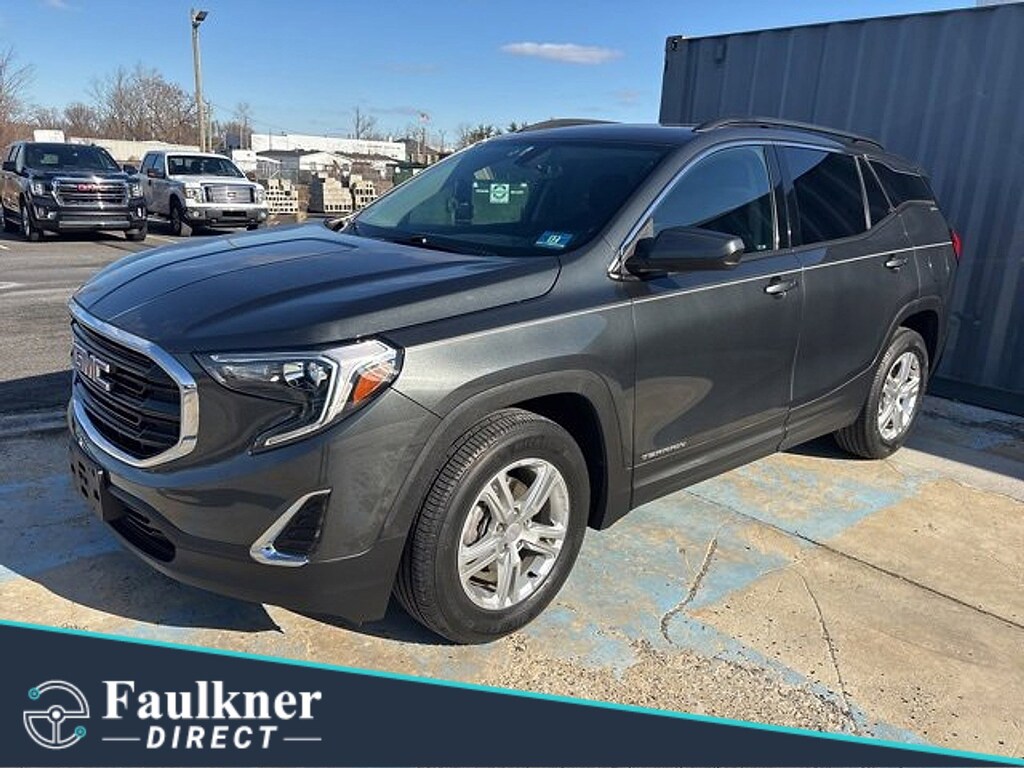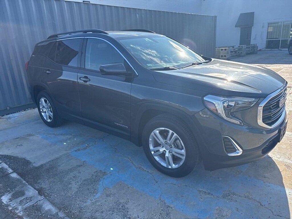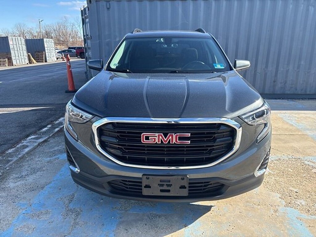 2019 GMC Terrain SLE Graphite Gray Metallic 2 USB Data Ports w/Auxiliary Input Jack, 3.47 Axle Ratio, 4-Way Manual Driver's Seat, 4-Way Manual Front Passenger Seat, 4-Wheel Disc Brakes, 6 Speakers, 6-Speaker Audio System Feature, 8-Way Power Driver Seat Adjuster, ABS brakes, Air Conditioning, All-Weather Cargo Mat (LPO), All-Weather Floor Mats, Alloy wheels, AM/FM radio, Apple CarPlay/Android Auto, Auto-dimming Rear-View mirror, Bluetooth® For Phone, Brake assist, Bumpers: body-color, Compass, Delay-off headlights, Driver & Front Passenger Heated Seats, Driver Convenience Package, Driver door bin, Driver vanity mirror, Dual front impact airbags, Dual front side impact airbags, Dual-Zone Automatic Climate Control, Electronic Stability Control, Emergency communication system, Exterior Parking Camera Rear, Four wheel independent suspension, Front anti-roll bar, Front Bucket Seats, Front Center Armrest, Front reading lights, Fully automatic headlights, Heated door mirrors, High-Intensity Discharge Headlights, Illuminated entry, Interior Protection Package (LPO), License Plate Front Mounting Package, Low tire pressure warning, Occupant sensing airbag, Outside temperature display, Overhead airbag, Overhead console, Panic alarm, Passenger door bin, Passenger vanity mirror, Power door mirrors, Power Driver Lumbar Control, Power steering, Power windows, Preferred Equipment Group 3SA, Premium Cloth Seat Trim, Radio data system, Radio: GMC Infotainment Audio System w/7 Display, Rear anti-roll bar, Rear seat center armrest, Rear window defroster, Rear window wiper, Remote keyless entry, Remote Start, Roof-Mounted Luggage Rack Black Side Rails, Security system, Speed control, Speed-sensing steering, Split folding rear seat, Spoiler, Steering wheel mounted audio controls, Tachometer, Telescoping steering wheel, Tilt steering wheel, Traction control, Trip computer, Variably intermittent wipers, Wheels: 17 x 7 Silver Painted Aluminum.