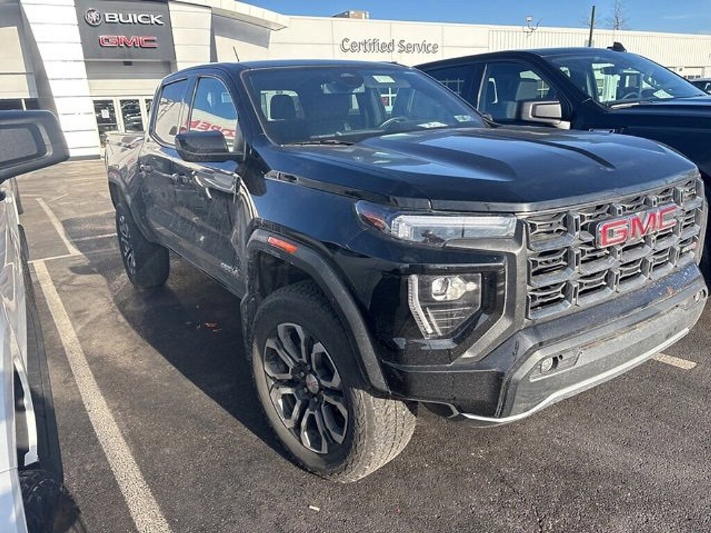 2023 GMC Canyon AT4 Onyx Black 4WD, 120-Volt Bed Mounted Power Outlet, 1st & 2nd Rows All-Weather Floor Liner (LPO), 2 1st Row USB Charge/Data Ports, 2 Rear USB Ports in Center Console (Charge-Only), 220 Amps Alternator, 3.42 Rear Axle Ratio, 4-Way Manual Front Passenger Seat Adjuster, 4-Wheel Disc Brakes, 6 Speakers, 6-Speaker Audio System Feature, 8-Way Power Driver Seat Adjuster, ABS brakes, Air Conditioning, Alloy wheels, AM/FM radio: SiriusXM, Apple CarPlay/Android Auto, Auto High-beam Headlights, Auto-dimming Rear-View mirror, Automatic Emergency Braking, Automatic Locking Rear Differential, Automatic Stop/Start, Automatic temperature control, Brake assist, Bumpers: body-color, Canyon Pro Safety, Cloth/CoreTec Seat Trim, Compass, Delay-off headlights, Driver & Front Passenger Illuminated Visors, Driver door bin, Driver Mode Selector, Driver vanity mirror, Dual front impact airbags, Dual front side impact airbags, Dual-Zone Automatic Air Conditioning, Electronic Stability Control, EZ-Lift & Lower Tailgate, Following Distance Indicator, Forward Collision Alert, Front anti-roll bar, Front Bucket Seats, Front Center Armrest, Front dual zone A/C, Front fog lights, Front LED Fog Lamps, Front Passenger Seatback Map Pocket, Front Pedestrian & Bicyclist Braking, Front reading lights, Front wheel independent suspension, Heated door mirrors, Heated Driver & Front Passenger Seats, Heated front seats, Heated Power-Adjustable Outside Mirrors, Illuminated entry, Inside Rear-View Auto-Dimming Mirror, Integrated Trailer Brake Controller, IntelliBeam Automatic High Beam On/Off, Interior Overhead Courtesy Light w/Dual Reading Lamp, Lane Keep Assist w/Lane Departure Warning, Low tire pressure warning, Manual Rear-Sliding Window, MultiStow Tailgate, Navigation System, Occupant sensing airbag, Outside temperature display, Overhead airbag, Overhead console, Panic alarm, Passenger door bin, Passenger vanity mirror, Power door mirrors, Power Driver Lumbar Control Seat Adjuster, Power driver seat, Power steering, Power windows, Preferred Equipment Group 4SG, ProGrade Trailering System, Radio data system, Radio: 11.3 Diagonal Premium GMC Infotainment Sys, Rear of Console 120-Volt Power Outlet, Rear reading lights, Rear step bumper, Rear window defroster, Rear-Window Electric Defogger, Remote keyless entry, Remote Vehicle Starter System, Security system, SiriusXM w/360L, Speed control, Speed-sensing steering, Split folding rear seat, Steering wheel mounted audio controls, Stop/Start System Disable Button Engine Control, Tachometer, Tailgate Keyed Cylinder Lock, Telescoping steering wheel, Tilt & Telescopic Manual Steering Column, Tilt steering wheel, Traction control, Trailering App System, Trailering Package, Trip computer, Variably intermittent wipers, Wheels: 18 x 8.5 Dark Gray Machined Finish Alum, Wheels: 20 x 9 Full Gloss Dark Gray Aluminum, Wireless Apple CarPlay/Wireless Android Auto, 4WD.