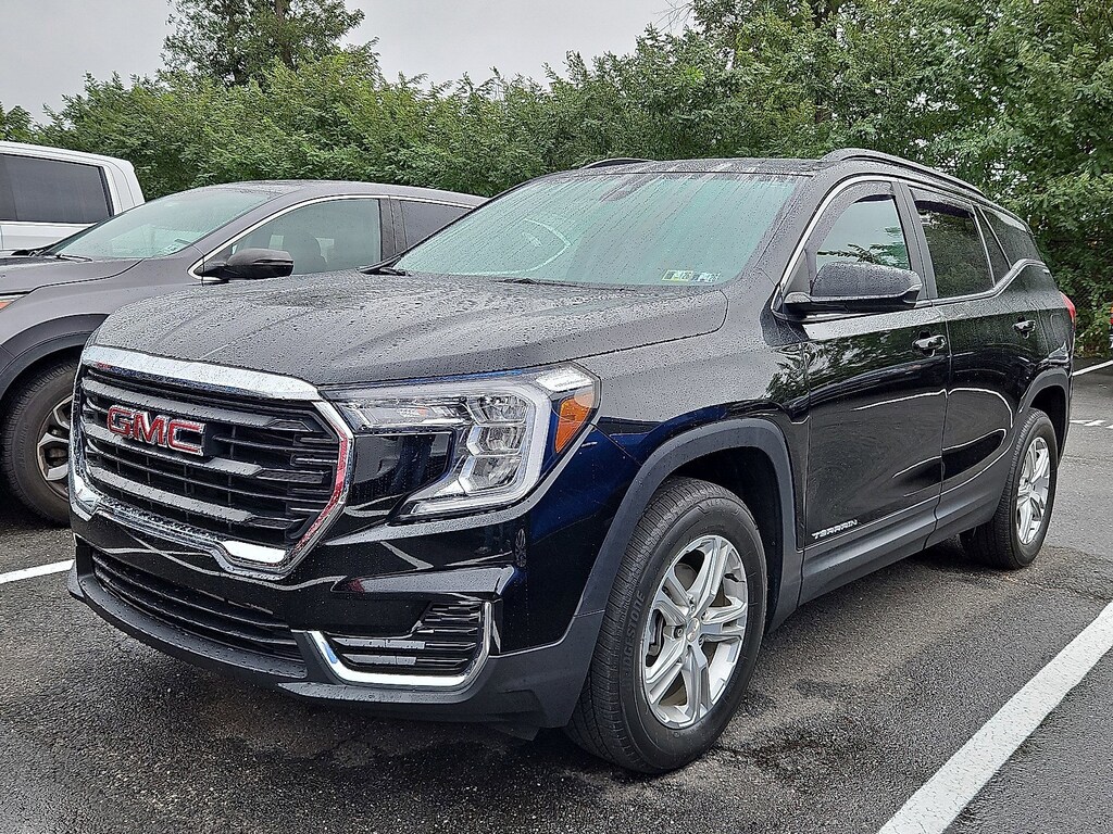2023 GMC Terrain SLE Ebony Twilight Metallic AWD, 2 USB Data Ports w/Auxiliary Input Jack, 3.47 Axle Ratio, 4-Way Manual Driver's Seat, 4-Way Manual Front Passenger Seat, 4-Wheel Disc Brakes, 4.2 Multi-Color Driver Information Screen, 6 Speakers, 6-Speaker Audio System Feature, 8-Way Power Driver Seat Adjuster, ABS brakes, Adaptive Cruise Control, Air Conditioning, Alloy wheels, AM/FM radio: SiriusXM, Auto High-beam Headlights, Auto-dimming Rear-View mirror, Bluetooth® For Phone, Brake assist, Bumpers: body-color, Compass, Delay-off headlights, Driver & Front Passenger Heated Seats, Driver Convenience Package, Driver door bin, Driver vanity mirror, Dual front impact airbags, Dual front side impact airbags, Dual-Zone Automatic Climate Control, Electronic Stability Control, Emergency communication system: OnStar and GMC connected services capable, Four wheel independent suspension, Front anti-roll bar, Front Bucket Seats, Front Center Armrest, Front reading lights, Fully automatic headlights, Heated door mirrors, Illuminated entry, Lane Change Alert w/Side Blind Zone Alert, Lane Departure Warning System, Low tire pressure warning, Occupant sensing airbag, Outside Heated Power-Adjustable Mirrors, Outside temperature display, Overhead airbag, Overhead console, Panic alarm, Passenger door bin, Passenger vanity mirror, Power door mirrors, Power Driver Lumbar Control, Power Programmable Rear Liftgate, Power steering, Power windows, Preferred Equipment Group 3SA, Premium Cloth Seat Trim, Radio data system, Radio: GMC Infotainment Audio System w/7 Display, Rear anti-roll bar, Rear Cross-Traffic Alert, Rear Park Assist, Rear seat center armrest, Rear window defroster, Rear window wiper, Remote keyless entry, Remote Start, Roof-Mounted Luggage Rack Side Rails, Safety Alert Seat, Security system, Side Blind Zone & Rear Cross Traffic, SiriusXM Radio, Speed control, Speed-sensing steering, Split folding rear seat, Spoiler, Steering wheel mounted audio controls, Tachometer, Telescoping steering wheel, Terrain Pro Safety Plus, Tilt steering wheel, Traction control, Trip computer, Variably intermittent wipers, Wheels: 17 x 7 Silver Painted Aluminum, Wireless Apple CarPlay/Wireless Android Auto, AWD.