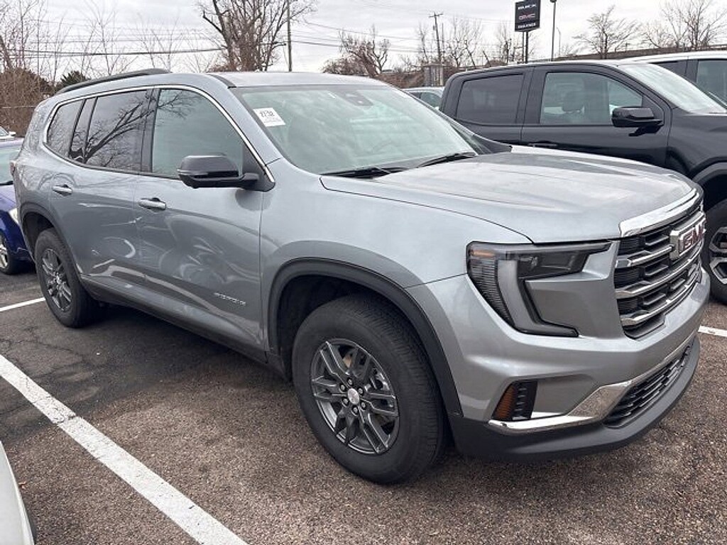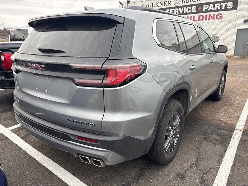 2025 GMC Acadia Elevation Sterling Metallic FWD, After Dark Cloth, 12 Speakers, 18 x 7.5 Aluminum Wheels, 2-Way Driver Power Lumbar Seat Adjuster, 3.49 Final Drive Axle Ratio, 3rd row seats: split-bench, 4-Way Manual Front Passenger Seat Adjuster, 4-Wheel Disc Brakes, 8-Passenger Seating (2-3-3 Seating Configuration), 8-Way Power Driver Seat Adjuster, ABS brakes, Air Conditioning, Alloy wheels, AM/FM radio: SiriusXM with 360L, Apple CarPlay/Android Auto, Auto High-beam Headlights, Auto-dimming Rear-View mirror, Automatic temperature control, Black Wheel Lug Nuts, Bodyside moldings, Bose Premium 12-Speaker System with Sub-Woofer, Brake assist, Bumpers: body-color, Cloth Seat Trim, Compass, Delay-off headlights, Driver door bin, Driver vanity mirror, Dual front impact airbags, Dual front side impact airbags, Electronic Stability Control, Emergency communication system: OnStar Services capable, Exterior Parking Camera Rear, Four wheel independent suspension, Front anti-roll bar, Front Bucket Seats, Front Center Armrest, Front dual zone A/C, Front fog lights, Front reading lights, Fully automatic headlights, Heated door mirrors, Heated Driver and Front Passenger Seats, Heated front seats, Heated steering wheel, Illuminated entry, Leather steering wheel, Low tire pressure warning, Navigation System, Occupant sensing airbag, Outside temperature display, Overhead airbag, Overhead console, Panic alarm, Passenger door bin, Passenger vanity mirror, Power door mirrors, Power driver seat, Power Liftgate, Power steering, Power windows, Preferred Equipment Group 4SC, Radio data system, Radio: 15 Diagonal Premium GMC Infotainment System, Rear air conditioning, Rear anti-roll bar, Rear reading lights, Rear seat center armrest, Rear side impact airbag, Rear window defroster, Rear window wiper, Remote keyless entry, Security system, SiriusXM with 360L, Speed control, Speed-sensing steering, Split folding rear seat, Spoiler, Sport steering wheel, Steering wheel mounted audio controls, Tachometer, Telescoping steering wheel, Tilt steering wheel, Traction control, Trip computer, Turn signal indicator mirrors, Variably intermittent wipers, Voltmeter, FWD, After Dark Cloth.