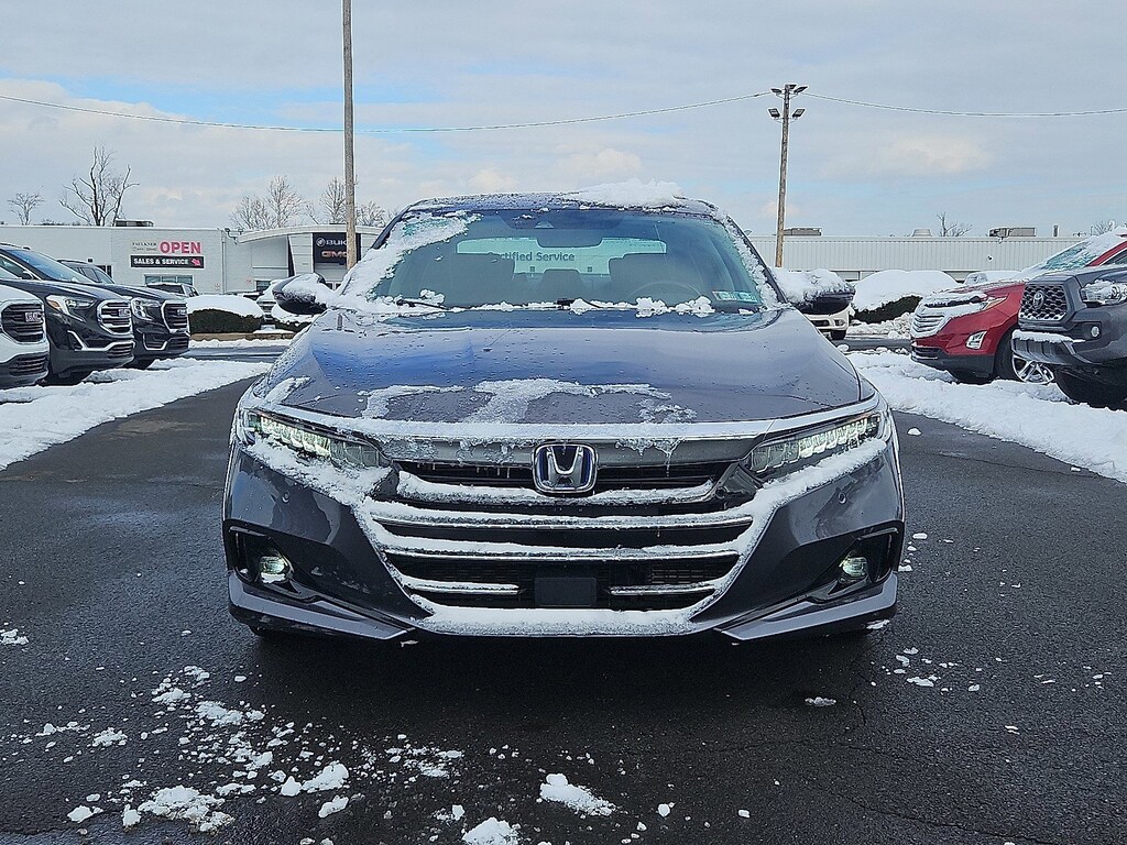 2021 Honda Accord Hybrid Touring Sonic Gray Pearl 2.0L 4-Cylinder DOHC 16V i-VTEC, 10 Speakers, 4-Wheel Disc Brakes, ABS brakes, Adaptive Cruise Control: Adaptive Cruise Control (ACC) with Low-Speed Follow, Adaptive suspension, Air Conditioning, Alloy wheels, AM/FM radio: SiriusXM, Apple CarPlay/Android Auto, Auto High-beam Headlights, Auto-dimming Rear-View mirror, Automatic temperature control, Blind Spot Information (BSI) System warning, Brake assist, Bumpers: body-color, Compass, Delay-off headlights, Driver door bin, Driver vanity mirror, Dual front impact airbags, Dual front side impact airbags, Electronic Stability Control, Emergency communication system: HondaLink, Exterior Parking Camera Rear, Forward collision: Collision Mitigation Braking System (CMBS) + FCW mitigation, Four wheel independent suspension, Front anti-roll bar, Front Bucket Seats, Front Center Armrest, Front dual zone A/C, Front fog lights, Front reading lights, Fully automatic headlights, Garage door transmitter: HomeLink, Heads-Up Display, Heated & Ventilated Front Bucket Seats, Heated door mirrors, Heated front seats, Heated rear seats, Illuminated entry, Knee airbag, Lane Departure Warning System, Leather steering wheel, Leather-Trimmed Seats, Low tire pressure warning, Memory seat, Navigation System, Occupant sensing airbag, Outside temperature display, Overhead airbag, Overhead console, Panic alarm, Passenger door bin, Passenger vanity mirror, Power door mirrors, Power driver seat, Power moonroof, Power passenger seat, Power steering, Power windows, Radio data system, Radio: 450-Watt AM/FM/HD Premium Audio System, Rain sensing wipers, Rear anti-roll bar, Rear seat center armrest, Rear window defroster, Remote keyless entry, Security system, Speed control, Speed-sensing steering, Speed-Sensitive Wipers, Split folding rear seat, Steering wheel mounted audio controls, Telescoping steering wheel, Tilt steering wheel, Traction control, Trip computer, Turn signal indicator mirrors, Variably intermittent wipers, Ventilated front seats, Wheels: 19 Machine-Finished Alloy w/Black Inserts, 2.0L 4-Cylinder DOHC 16V i-VTEC.
