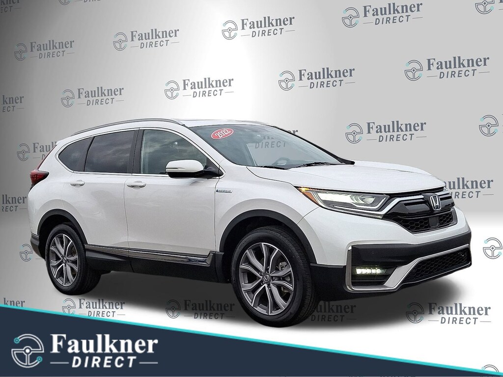 Recent Arrival! 2022 Honda CR-V Hybrid Platinum White Pearl Local Trade-in, CR-V Hybrid Touring, 2.0L I4 DOHC 16V, AWD, Alloy wheels, Apple CarPlay/Android Auto, Heated Front Bucket Seats, Leather Seat Trim, Memory seat, Power moonroof, Remote keyless entry. CARFAX One-Owner.
