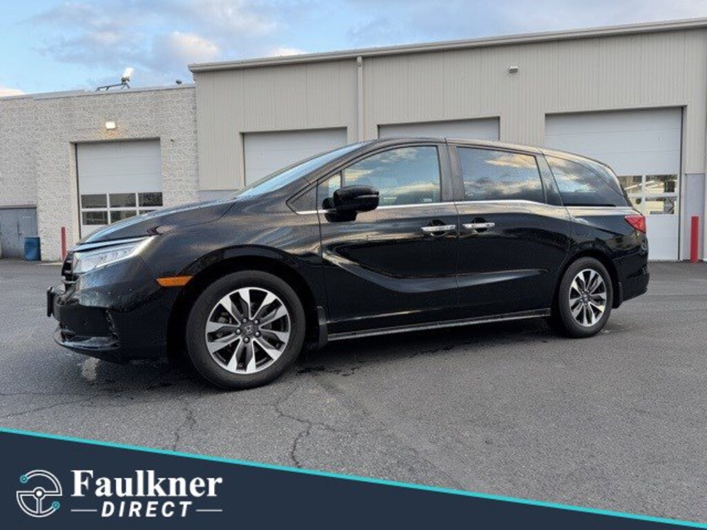 Recent Arrival! Crystal Black Pearl This Odyssey EX-L is nicely equipped with AM/FM radio: SiriusXM, Apple CarPlay/Android Auto, Blind Spot Information (BSI) System warning, Exterior Parking Camera Rear, Lane departure: Lane Keeping Assist System (LKAS) active, Power moonroof, 18 Machine-Finished Alloy Wheels, 3.61 Axle Ratio, 3rd row seats: split-bench, 4-Wheel Disc Brakes, 7 Speakers, A/V remote: CabinControl, ABS brakes, Adaptive Cruise Control: Adaptive Cruise Control (ACC) with Low-Speed Follow, Air Conditioning, Alloy wheels, Anti-whiplash front head restraints, Auto High-beam Headlights, Auto-dimming Rear-View mirror, Automatic temperature control, Brake assist, Bumpers: body-color, Delay-off headlights, Driver door bin, Driver vanity mirror, Driver's Seat Mounted Armrest, Dual front impact airbags, Dual front side impact airbags, Electronic Stability Control, Four wheel independent suspension, Front anti-roll bar, Front Bucket Seats, Front dual zone A/C, Front fog lights, Front reading lights, Fully automatic headlights, Garage door transmitter: HomeLink, Heated door mirrors, Heated Front Bucket Seats, Heated front seats, Illuminated entry, Knee airbag, Leather Seat Trim, Leather steering wheel, Low tire pressure warning, Memory seat, Occupant sensing airbag, Outside temperature display, Overhead airbag, Overhead console, Panic alarm, Passenger door bin, Passenger seat mounted armrest, Passenger vanity mirror, Power door mirrors, Power driver seat, Power Liftgate, Power passenger seat, Power steering, Power windows, Radio data system, Radio: 160-Watt AM/FM/HD/SiriusXM Audio System, Rear air conditioning, Rear anti-roll bar, Rear reading lights, Rear seat center armrest, Rear window defroster, Rear window wiper, Reclining 3rd row seat, Remote keyless entry, Security system, Speed control, Speed-sensing steering, Speed-Sensitive Wipers, Split folding rear seat, Spoiler, Steering wheel mounted audio controls, Tachometer, Telescoping steering wheel, Tilt steering wheel, Traction control, Trip computer, Turn signal indicator mirrors, and Variably intermittent wipers. AM/FM radio: SiriusXM, Apple CarPlay/Android Auto, Blind Spot Information (BSI) System warning, Exterior Parking Camera Rear, Lane departure: Lane Keeping Assist System (LKAS) active, Power moonroof.