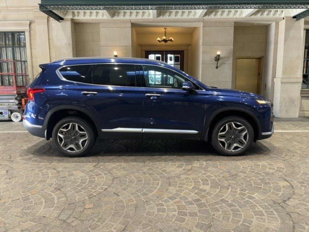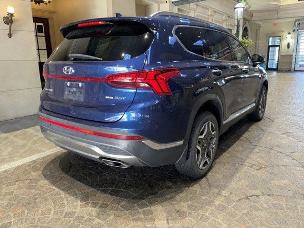 2022 Hyundai Santa Fe Limited AWD I4 CARFAX One-Owner. Clean CARFAX. Recent Arrival! Apple CarPlay & Android Auto, Auto-dimming Rear-View mirror, Automatic temperature control, Brake assist, Carpeted Floor Mats, Delay-off headlights, Driver door bin, Dual front impact airbags, Electronic Stability Control, Emergency communication system, Front dual zone A/C, Front reading lights, Garage door transmitter: HomeLink, harman/kardon® Speakers, Heated & Ventilated Front Bucket Seats, Heated front seats, Heated rear seats, Heated steering wheel, Illuminated entry, Leather Seat Trim, Leather steering wheel, Low tire pressure warning, Memory seat, Navigation System, Occupant sensing airbag, Option Group 01, Outside temperature display, Panic alarm, Power driver seat, Power Liftgate, Power moonroof, Power passenger seat, Power steering, Power windows, Rain sensing wipers, Rear window wiper, Remote keyless entry, Security system, Speed-sensing steering, Steering wheel mounted audio controls, Variably intermittent wipers.