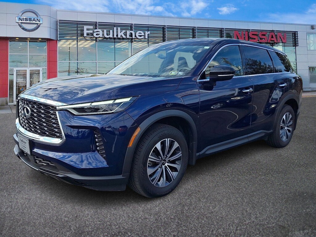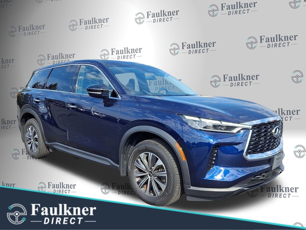 2022 INFINITI QX60 PURE Grand Blue *Schedule a test Drive at your home or office*, 3rd row seats: bench, Blind Spot Warning, Brake assist, Electronic Stability Control, Emergency communication system, Front dual zone A/C, Heated door mirrors, Heated Front Bucket Seats, Heated steering wheel, Knee airbag, Leather-Appointed Seating Surfaces, Memory seat, Power Liftgate, Power moonroof, Rear air conditioning, Rear Parking Sensors, Reclining 3rd row seat, Wheels: 18 x 8J Machined Aluminum Alloy, 4-Wheel Disc Brakes, 4.334 Axle Ratio, 9 Speakers, ABS brakes, Air Conditioning, Alloy wheels, AM/FM radio: SiriusXM, Anti-whiplash front head restraints, Auto High-beam Headlights, Auto-dimming Rear-View mirror, Automatic temperature control, Bumpers: body-color, Delay-off headlights, Driver door bin, Driver vanity mirror, Dual front impact airbags, Dual front side impact airbags, Floor Mats, Four wheel independent suspension, Front anti-roll bar, Front Bucket Seats, Front Center Armrest, Front reading lights, Fully automatic headlights, Heated front seats, Illuminated entry, Leather Shift Knob, Leather steering wheel, Literature Kit, Low tire pressure warning, Occupant sensing airbag, Outside temperature display, Overhead airbag, Overhead console, Panic alarm, Passenger door bin, Passenger vanity mirror, Power door mirrors, Power driver seat, Power passenger seat, Power steering, Power windows, Radio data system, Radio: AM/FM Audio System, Rain sensing wipers, Rear anti-roll bar, Rear reading lights, Rear seat center armrest, Rear side impact airbag, Rear window defroster, Rear window wiper, Remote keyless entry, Security system, Speed control, Speed-sensing steering, Speed-Sensitive Wipers, Splash Guards, Split folding rear seat, Spoiler, Steering wheel mounted audio controls, Tachometer, Telescoping steering wheel, Tilt steering wheel, Traction control, Trip computer, Turn signal indicator mirrors, Variably intermittent wipers, 3rd row seats: bench, Blind Spot Warning, Brake assist, Electronic Stability Control, Emergency communication system, Front dual zone A/C, Heated door mirrors, Heated Front Bucket Seats, Heated steering wheel, Knee airbag, Leather-Appointed Seating Surfaces, Memory seat, Power Liftgate, Power moonroof, Rear air conditioning, Rear Parking Sensors, Reclining 3rd row seat, Wheels: 18 x 8J Machined Aluminum Alloy.