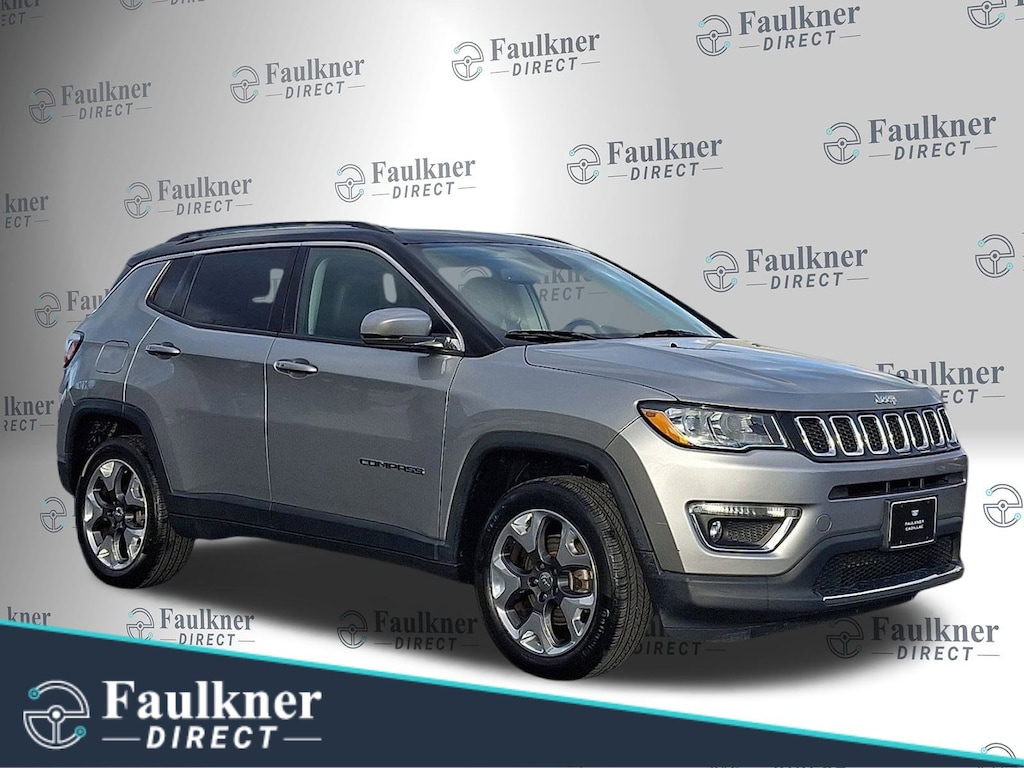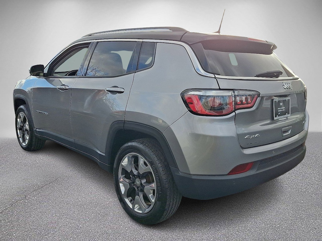 Recent Arrival! Clean CARFAX. Billet Silver Metallic Clearcoat This Compass Limited is nicely equipped with Quick Order Package 2GG, Safety & Security Group (Blind Spot & Cross Path Detection, ParkSense Rear Park Assist System, and Rain Sensitive/Intermittent Wipers), 4WD, 1-Year SiriusXM Guardian Trial, 3.73 Axle Ratio, 4-Wheel Disc Brakes, 6 Speakers, 8.4 Touch Screen Display, ABS brakes, Air Conditioning, Alloy wheels, AM/FM radio: SiriusXM, Anti-whiplash front head restraints, Apple CarPlay, Apple CarPlay/Android Auto, Auto-dimming Rear-View mirror, Automatic temperature control, Bluetooth Integrated Voice Command, Bluetooth® Streaming Audio, Brake assist, Bumpers: body-color, Compass, Delay-off headlights, Driver door bin, Driver vanity mirror, Dual front impact airbags, Dual front side impact airbags, Electronic Stability Control, Four wheel independent suspension, Front anti-roll bar, Front Bucket Seats, Front Center Armrest w/Storage, Front dual zone A/C, Front fog lights, Front reading lights, Fully automatic headlights, Google Android Auto, GPS Antenna Input, GPS Navigation, HD Radio, Heated door mirrors, Heated front seats, Heated steering wheel, Illuminated entry, Knee airbag, Leather Shift Knob, Leather Trimmed Bucket Seats, Low tire pressure warning, Media Hub (USB, AUX), Occupant sensing airbag, Outside temperature display, Overhead airbag, Overhead console, Panic alarm, ParkView Rear Back-Up Camera, Passenger door bin, Passenger vanity mirror, Power door mirrors, Power driver seat, Power Front/Fixed Rear Full Sunroof, Power Liftgate, Power steering, Power windows, Radio: Uconnect 4 w/8.4 Display, Radio: Uconnect 4C Nav w/8.4 Display, Rear anti-roll bar, Rear seat center armrest, Rear window defroster, Rear window wiper, Remote keyless entry, Roof rack: rails only, Security system, SiriusXM Traffic Plus, SiriusXM Travel Link, Speed control, Split folding rear seat, Spoiler, Steering wheel mounted audio controls, Tachometer, Telescoping steering wheel, Tilt steering wheel, Traction control, Trip computer, Turn signal indicator mirrors, USB Host Flip, Variably intermittent wipers, and Wheels: 18 x 7.0 Polished/Gray Pockets Aluminum. 4WD.