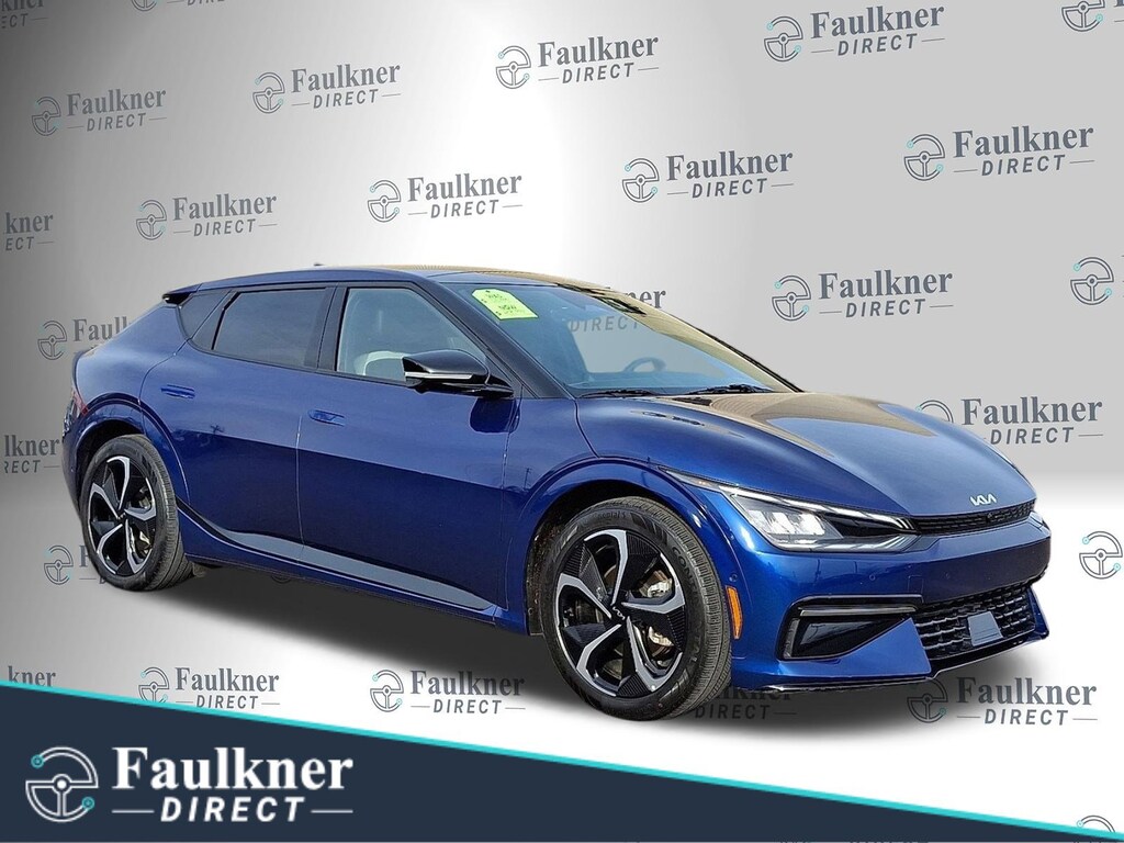 Priced below KBB Fair Purchase Price! Clean CARFAX. CARFAX One-Owner. Yacht Blue 2023 Kia EV6 GT-Line Electric Motor Apple CarPlay & Android Auto, Auto High-beam Headlights, Delay-off headlights, Fully automatic headlights, Navigation system: AVN 5.0 Navigation System, Power Liftgate, Power moonroof, Ventilated front seats.