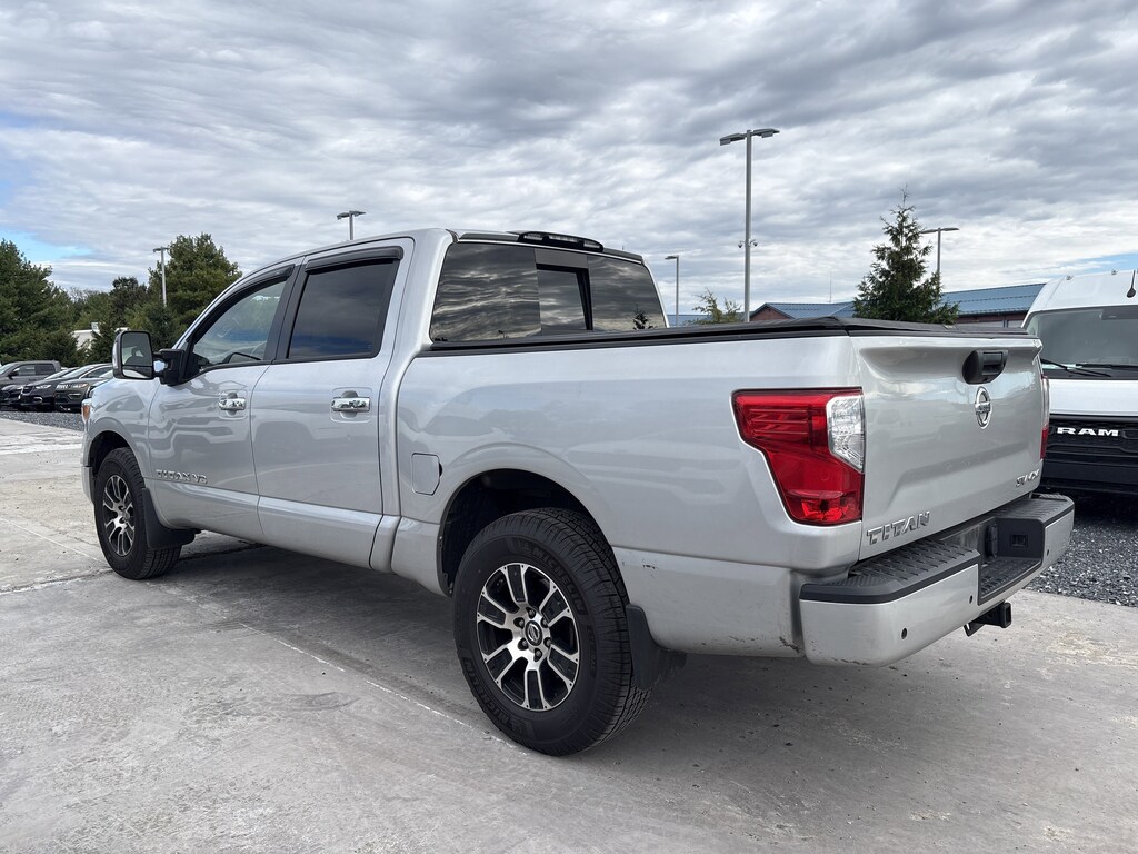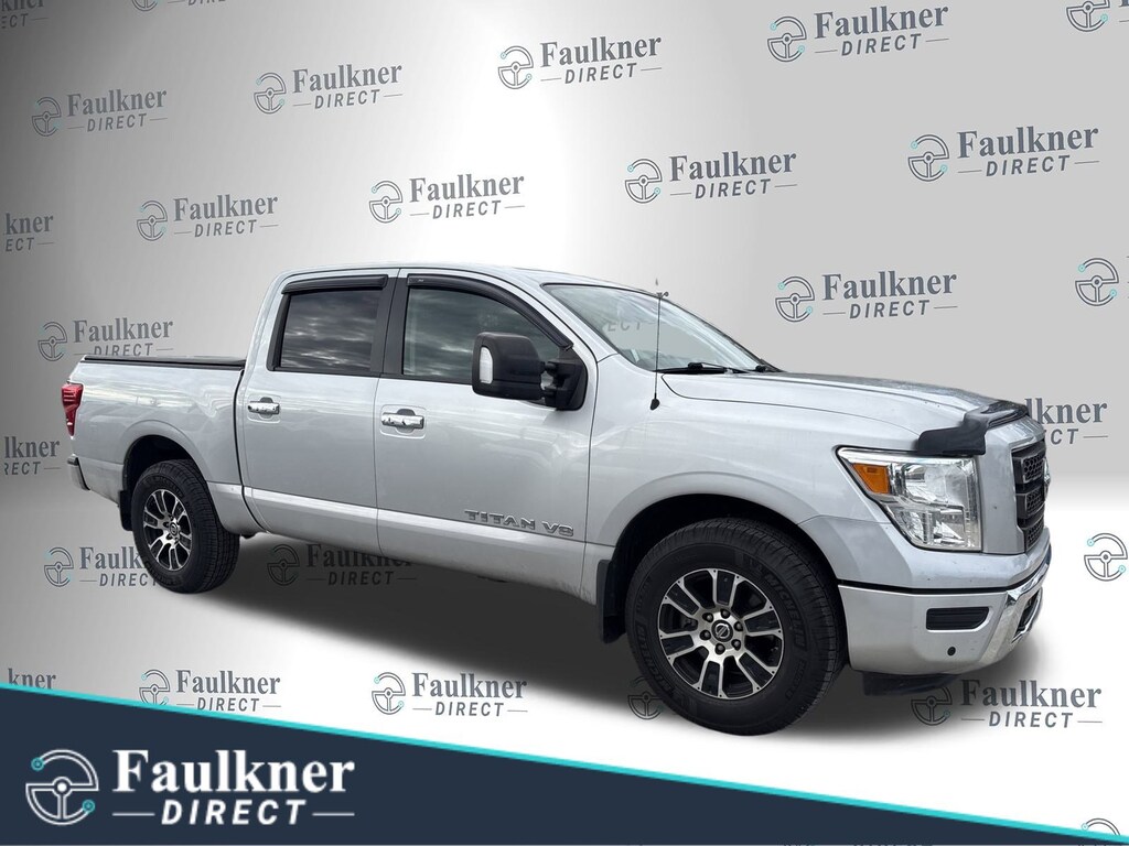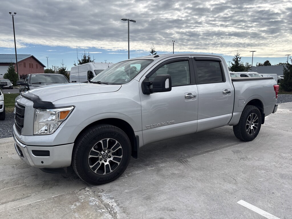 Recent Arrival! Brilliant Silver Metallic This Titan SV is nicely equipped with Protection Package 1, SV Convenience Package (110V/12V Outlets In Back Of Center Console, 2 Illuminated USB-A Ports In Back Of Center Console, Auto-Dimming Rear-View Mirror, Chrome Interior Door Locks, Convex Spotter Mirror, Dedicated Configurable Cell Phone Holder, Dual Zone Automatic HVAC, Front & Rear Parking Sensors, Heated Front Captain's Chairs, Intelligent Key System, Leather-Wrapped Steering Wheel, Power Sliding Rear Window w/Defogger, Radio: NissanConnect w/Navigation, Rear HVAC Vents, Remote Engine Start on Key Fob, and Traffic Sign Recognition (TSR)), SV Tow Package (4-Pin/7-Pin Wiring Harness Connector (Rear Bumper), Heated Manually Extendable Tow Mirrors, Puddle Lamps, Receiver Hitch, Trailer Brake Controller, and Trailer Light Check Function On Key Fob), SV Utility Package (110V Outlet in Bed, Auto-Dimming Rearview Mirror w/UGDO, Flat Floor Function w/Tie Down Hooks, LED Tailgate Area Illumination, LED Under Rail Bed Lighting, Rain Sensing Wipers, Rear Utility Bed Step, Spray-On Bedliner, Universal Garage Door Opener, and Utilitrack System w/4 Tie-Down Cleats), 4WD, 3.692 Axle Ratio, 4-Wheel Disc Brakes, 6 Speakers, ABS brakes, Air Conditioning, Alloy wheels, AM/FM radio: SiriusXM, Auto High-beam Headlights, Blind Spot Warning, Brake assist, Bumpers: chrome, Carpet Floor Mats (L95), Cloth Seat Trim, Driver door bin, Driver vanity mirror, Dual front impact airbags, Dual front side impact airbags, Electronic Stability Control, Emergency communication system: NissanConnect Services, Front anti-roll bar, Front Center Armrest w/Storage, Front reading lights, Front Split Bench Seat (40/20/40), Front wheel independent suspension, Fully automatic headlights, Heated door mirrors, Illuminated entry, Knee airbag, Low tire pressure warning, NissanConnect featuring Apple CarPlay and Android Auto, Occupant sensing airbag, Outside temperature display, Overhead airbag, Overhead console, Panic alarm, Passenger door bin, Passenger vanity mirror, Power door mirrors, Power steering, Power windows, Radio data system, Radio: NissanConnect AM/FM, Rear anti-roll bar, Rear Bumper Step w/Electronic Tailgate Lock, Rear Parking Sensors, Rear seat center armrest, Rear step bumper, Rear window defroster, Remote keyless entry, Security system, Speed control, Speed-sensing steering, Speed-Sensitive Wipers, Splash Guards, Split folding rear seat, Steering wheel mounted audio controls, Tachometer, Telescoping steering wheel, Tilt steering wheel, Traction control, Trip computer, Turn signal indicator mirrors, Variably intermittent wipers, Voltmeter, Wheels: 18 x 8 Painted Machined Alloy, and Wheels: 20 x 8 Chrome. 4WD.
