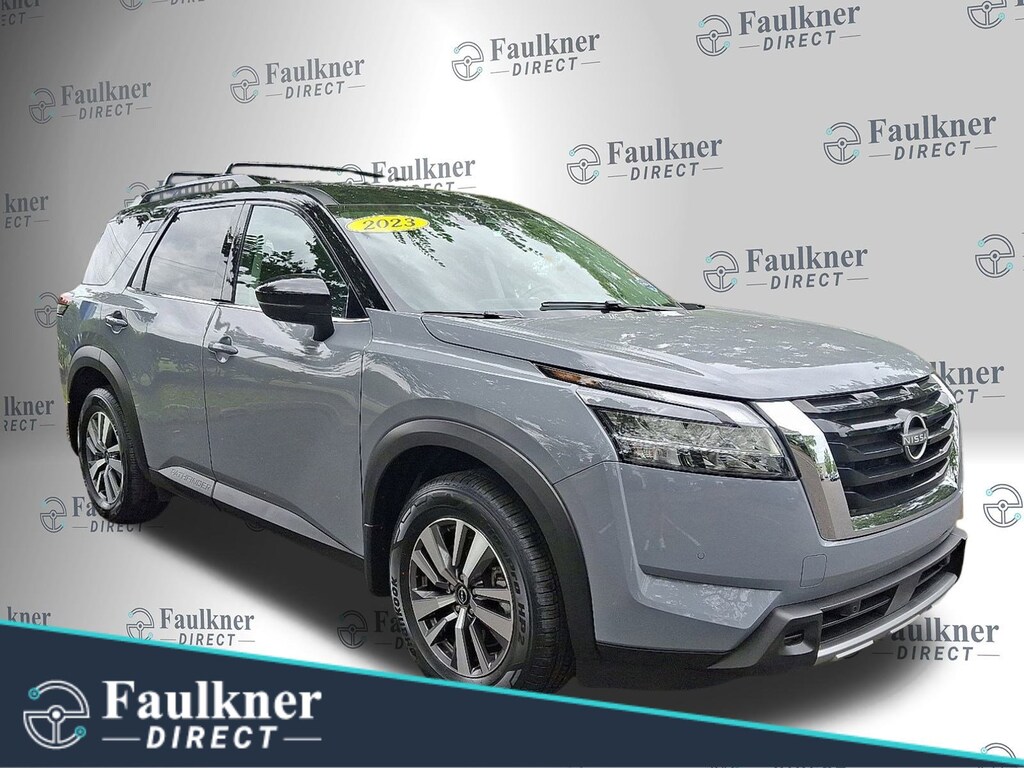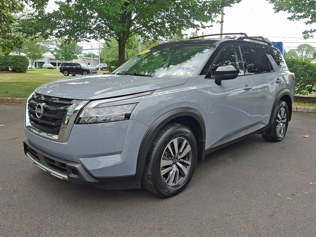 2023 Nissan Pathfinder SL 4WD V6 CARFAX One-Owner. Clean CARFAX. 3rd row seats: bench, ABS brakes, AM/FM radio: SiriusXM, Automatic temperature control, Bench Seat Carpeted Floor Mats (Set of 4), Brake assist, Bumpers: body-color, Dual front side impact airbags, Electronic Stability Control, Exterior Parking Camera Rear, Four wheel independent suspension, Front anti-roll bar, Front reading lights, Heated door mirrors, Heated Front Bucket Seats, Heated front seats, Heated steering wheel, Leather Seating Surfaces, Low tire pressure warning, Navigation system: NissanConnect Navigation, NissanConnect w/Navigation & Services, Overhead airbag, Panic alarm, Passenger door bin, Power door mirrors, Power driver seat, Power Liftgate, Power steering, Power windows, Radio data system, Rear seat center armrest, Steering wheel mounted audio controls, Telescoping steering wheel, Variably intermittent wipers.