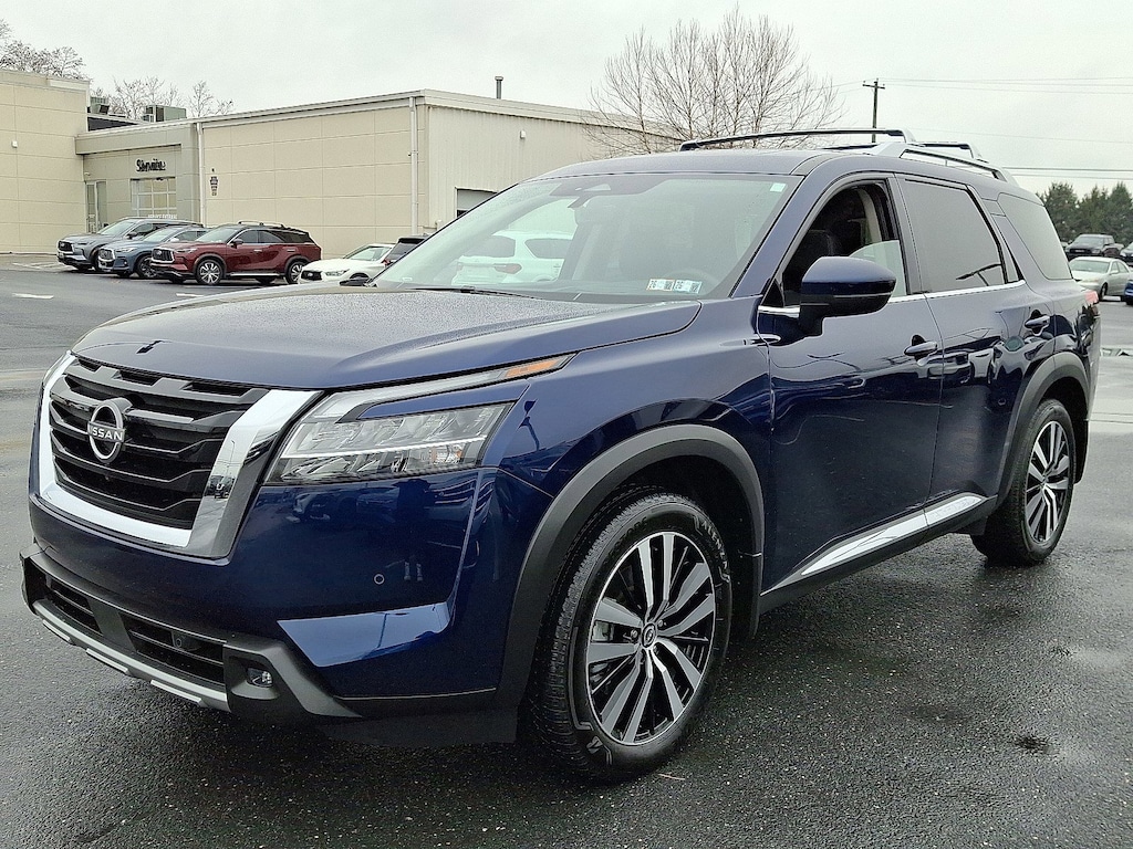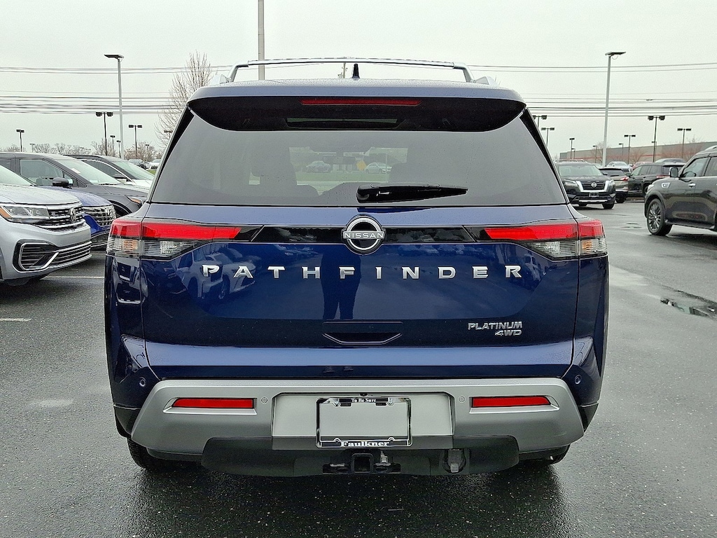 Pathfinder Platinum, 3.5L V6 DOHC, 4WD, 13 Speakers, 2nd-Row Captain Chairs, 2nd-Row Rear Headrest, 3rd row seats: bench, 4-Wheel Disc Brakes, ABS brakes, Auto High-beam Headlights, Auto tilt-away steering wheel, Auto-dimming Rear-View mirror, Automatic temperature control, Bose Premium Audio System, Cargo Area Protector, Cargo Net, Cargo Package, Dual front impact airbags, Dual front side impact airbags, Emergency communication system, Exterior Parking Camera Rear, Front dual zone A/C, Garage door transmitter: HomeLink, Heads-Up Display, Heated & Cooled Front Bucket Seats, Heated door mirrors, Heated rear seats, Heated steering wheel, LED Fog Lamps, Memory seat, Navigation system: NissanConnect with Navigation and Services, NissanConnect featuring Apple CarPlay and Android Auto, NissanConnect w/Navigation & Services, Platinum Captain Chairs Package, Power driver seat, Power Liftgate, Power moonroof, Power passenger seat, Radio: AM/FM Audio System, Rain sensing wipers, Rear air conditioning, Remote keyless entry, Semi-Aniline Leather-Appointed Seating Surfaces, Steering wheel memory, Wheels: 20 x 8J Machined Alloy.