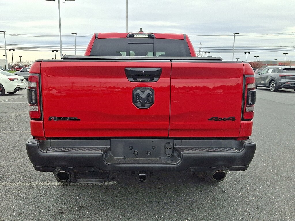 *Backup Camera*, *Bluetooth Hands-Free Calling*, *Built-in USB ports*, *Heated Seats*, *Push Button Start*, *Alloy Wheels*, *Apple Car Play*, *Android Auto*, 1500 Rebel, HEMI 5.7L V8 Multi Displacement VVT eTorque, 4WD, 115V Auxiliary Rear Power Outlet, 12 Touchscreen Display, 2-Door Passive Entry, Front Door Locks, 26 Gal. Fuel Tank (Replace 23 Gal.), 2nd Row In Floor Storage Bins, 4-Wheel Disc Brakes, 4G LTE Wi-Fi Hot Spot, ABS brakes, Adaptive Cruise Control w/Stop & Go, Advanced Safety Group, Apple CarPlay, Apple CarPlay/Android Auto, Auto High Beam Headlamp Control, Auto-Dimming Exterior Driver Mirror, Automatic temperature control, Bed Utility Group, Black Front Bumper w/Black Plate, Black Premium Power Mirrors, Blind Spot & Cross Path Detection, Cloth/Vinyl Low Back Bucket Seats, Comfort/Convenience Group, Connected Travel & Traffic Services, Connectivity - US/Canada, Convex Wide-Angle Exterior Mirror Insert, Digital Rearview Mirror, Disassociated Touchscreen Display, Dual front impact airbags, Dual front side impact airbags, Emergency communication system: SiriusXM Guardian, Exterior 115V AC Outlet, Exterior Mirrors w/Heating Element, Exterior Mirrors w/Memory, Foam Bottle Insert (Door Trim Panel), For Details, Visit DriveUconnect.com, Front fog lights, Global Telematics Box Module (TBM), Google Android Auto, GPS Antenna Input, GPS Navigation, harman/kardon 19 Speaker Premium Sound, HD Radio, Heads-Up Display, Heated door mirrors, Heated Front Seats, Heated Second Row Seats, Heated Steering Wheel, Integrated Voice Command w/Bluetooth, Lane Keep Assist, Media Hub w/2 Charge Only USBs, MOPAR 4 Adjustable Cargo Tie-Down Hooks, Navigation System, Night Edition, Off-Road Information Pages, Panic alarm, Parallel & Perp Park Assist w/Stop, ParkSense Front/Rear Park Assist w/Stop, ParkView Rear Back-Up Camera, Pedestrian Emergency Braking, Pick-Up Box Lighting, Power 2-Way Driver Lumbar Adjust, Power 8-Way Driver & Passenger Seats, Power 8-Way Driver Seat, Power Adjustable Pedals, Power-Folding Mirrors, Quick Order Package 27W Rebel, Radio: Uconnect 5 Nav w/12.0 Display, Rain Sensitive Windshield Wipers, RAM Grille Badge - Black, RamBox Cargo Management System, Rear Dome w/On/Off Switch Lamp, Rear Power Sliding Window, Rear Underseat Compartment Storage, Rear Window Defroster, Rebel Level 2 Equipment Group, Remote Start System, Remote Tailgate Release, Security Alarm, SiriusXM Radio Service, SiriusXM w/360L, Sun Visors w/Illuminated Vanity Mirrors, Surround View Camera System, Tailgate Ajar Warning Lamp, Technology Group, Universal Garage Door Opener, USB Host Flip, Wheels: 18 x 8.0 Gloss Black, Wireless Charging Pad.